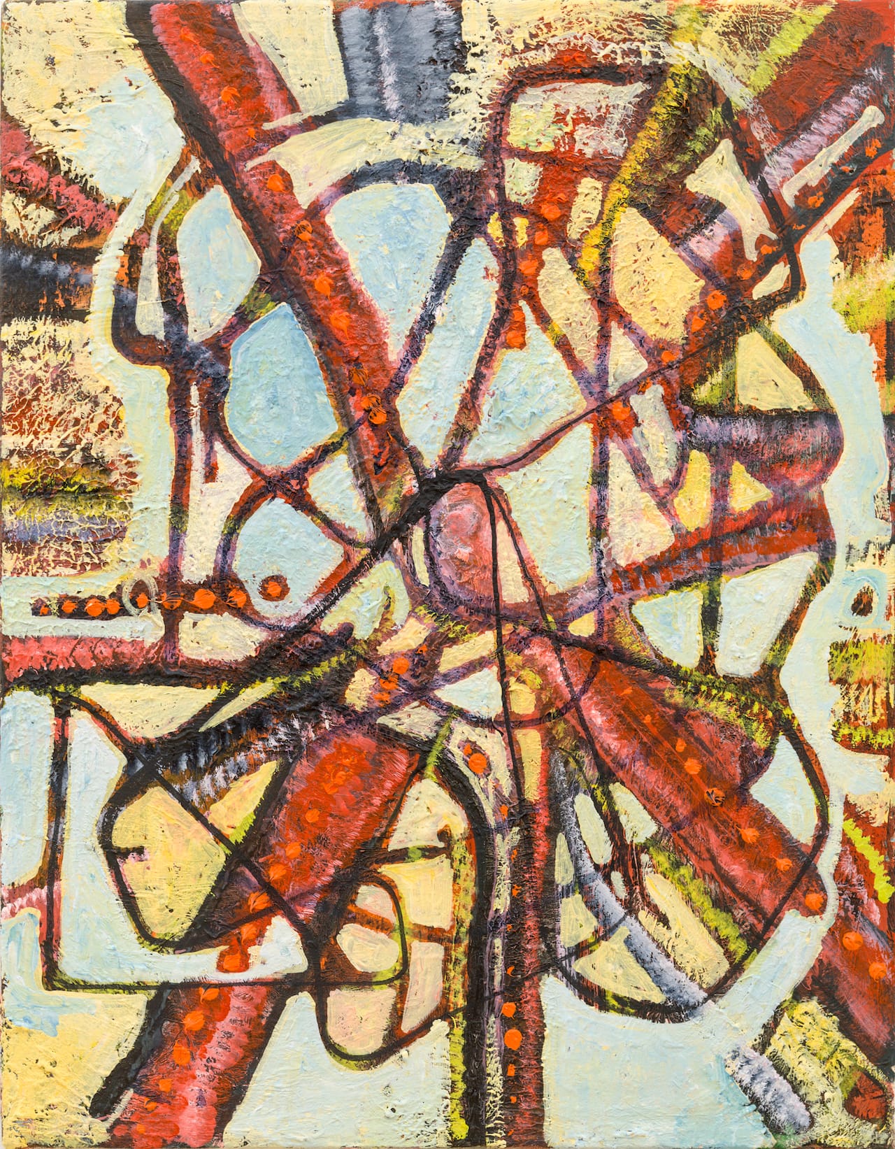 In contrast to his earlier paintings, what “Biodynamic Radiation” and such works as “Offers of Refusal” (2014-2015) and “We Blew It” (2015) prove is that DiBenedetto can be inventive when he trusts himself to find the painting’s interaction of figure and ground by being open to impulse and spontaneity, by being a painter of process rather than a maker of symbols. One sees such passages and areas in the larger paintings, too, but not always with such power. The linear, crystalline structures that he made in Chaoticus have led to a new place of exploration in his work. More than adding up to an image, the details hold our attention and compel us to continually refocus. This quality was present in his earlier work, but it is much more present in these recent works. DiBenedetto’s mutating forms (paint) may not be comforting, but that isn’t his goal. He is trying to get to something more disquieting and fascinating. His manipulations of paint, and the disturbing associations it might bring to mind, are something to be reckoned with.