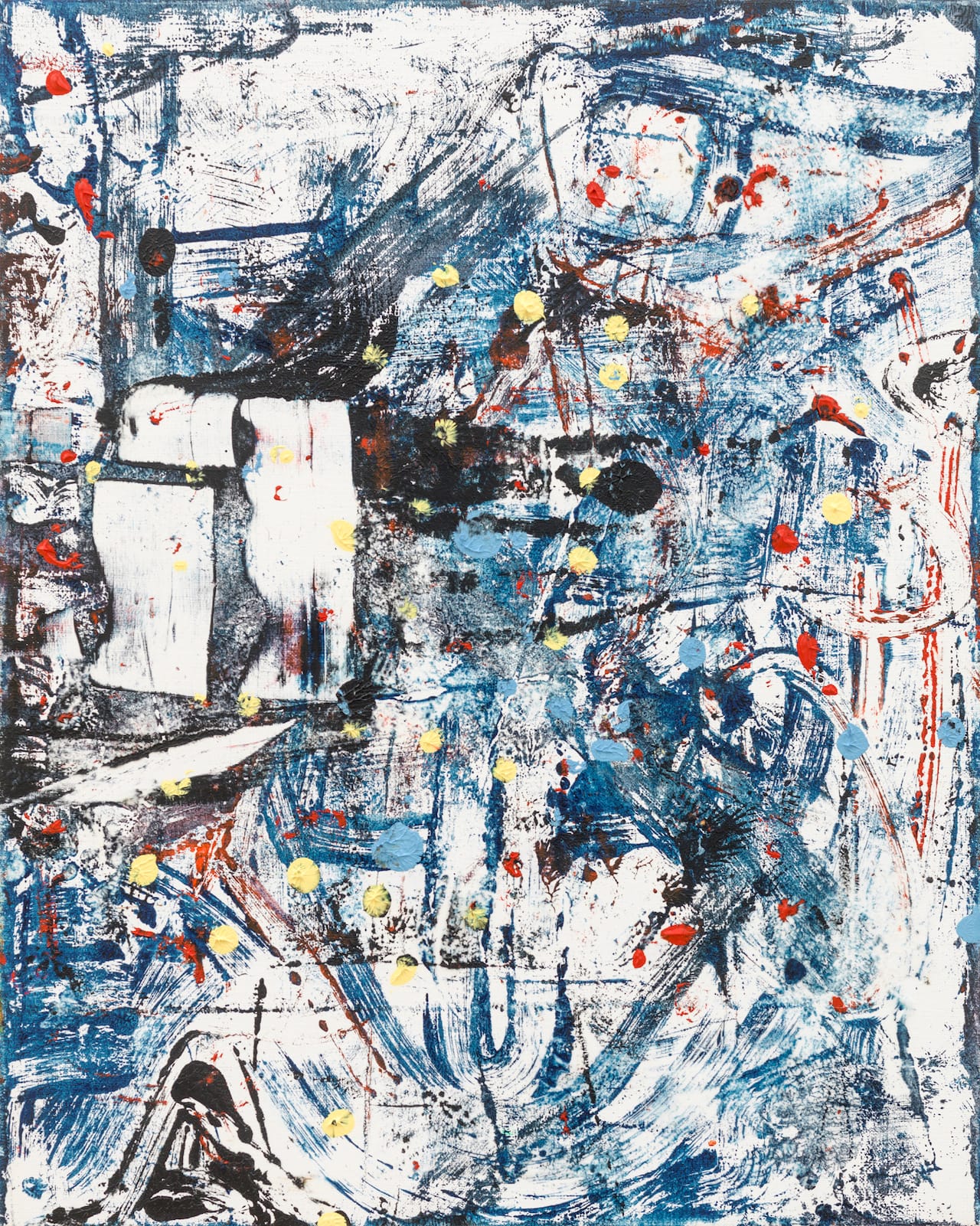In his 2008 exhibition, Chaoticus, at David Nolan, which I reviewed for The Brooklyn Rail (June 2008), it was clear that DiBenedetto was trying to change, shake things up. He worked in watercolor and gouache on plastic sheets, which went against his long developed practice of building up his oil paintings. Working with watercolor and gouache on a non-absorbent surface required him to act quicker and to be open to spontaneous decisions, which were the opposite of what he did in his paintings. Artists who are rooted in a slow and deliberate application of paint rarely change so radically, and the shifts don’t necessarily augur well. But, as his current exhibition proves, DiBenedetto has transformed his work without giving up his love for encrusted, reworked surfaces and thick paint.