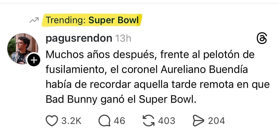 Like Bad Bunny’s performance, some of the best memes are in Spanish — or Spanglish. One particularly deep cut is this remix of Gabriel Garcia Marquez's magnum opus “One Hundred Years of Solitude” (1967).