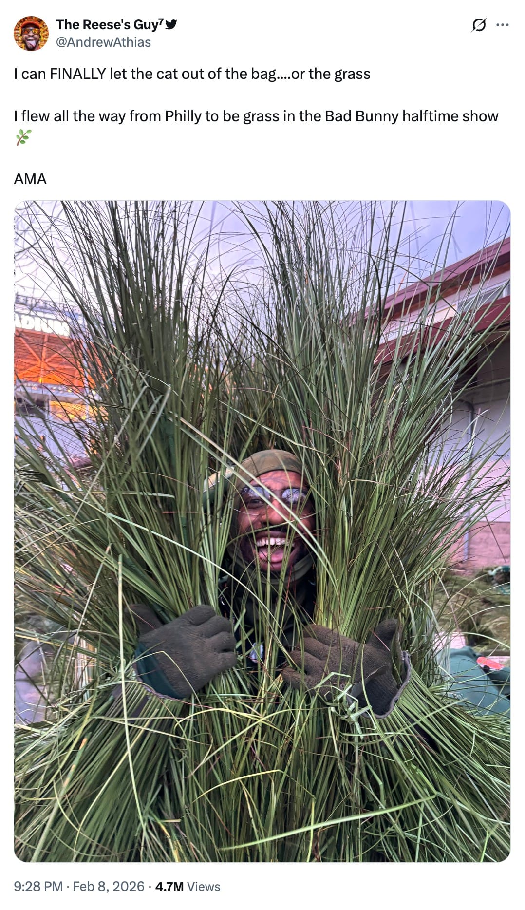 The sugarcane plants have also been a hot topic online after we found out that there were actually people inside of them. It makes sense that the props could simply be walked on and walked off of the stage considering the time crunch for setting up, but the visuals of the plants scurrying across the football field were quite entertaining.