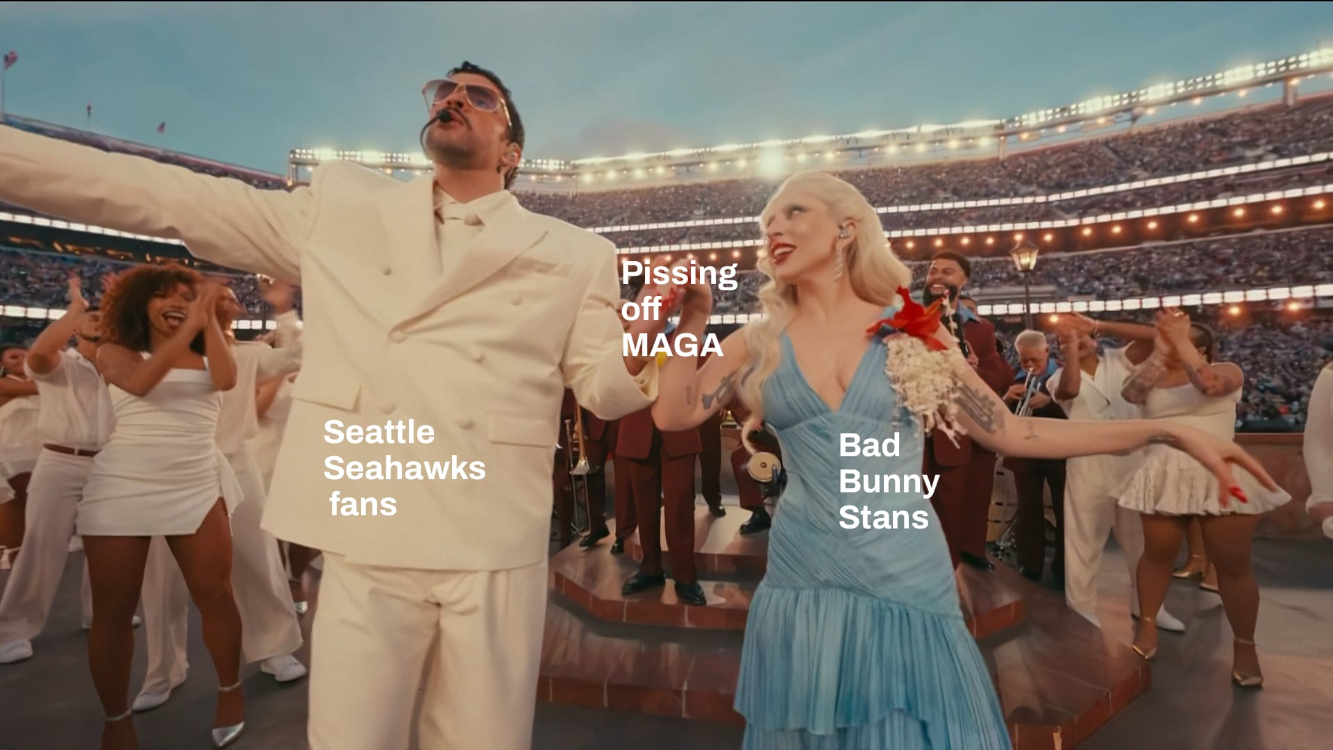 Lady Gaga and Bad Bunny, Super Bowl halftime (2026) pic.twitter.com/ib3OshUzmN