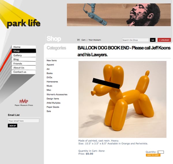 And Park Life, the store that received the cease-and-desist letter also has a funny message of their page featuring the balloon dog bookends.