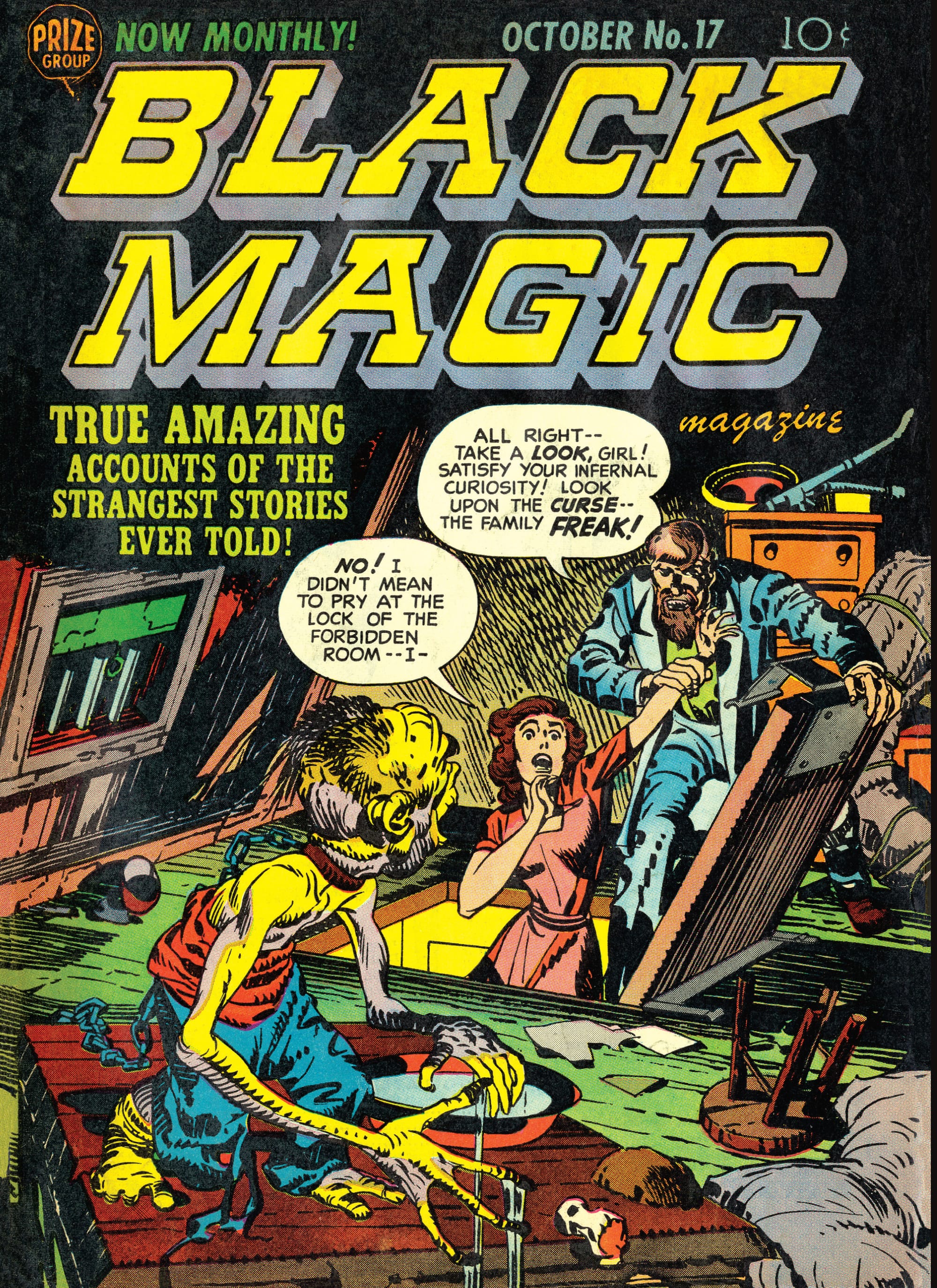 Wertham scored a seat before the Senate Subcommittee Hearings into Juvenile Delinquency in April 1954. When governmental regulation loomed, the self-regulatory Comics Code Authority emerged that fall. A problematic and sweeping set of vanilla rules instituted to police comics’ subject matter and art, the Code sank publishers and killed off the kind of crime and horror books for which readers crowded newsstands. Hadju reports that by the early “pre-Code” 1950s, horror comics in particular had grown “ever more gruesome and lurid.” And they were everywhere.