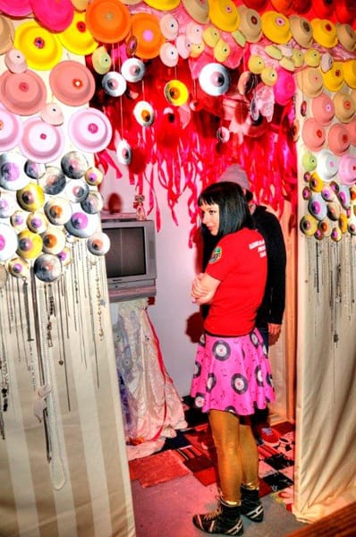 - Angela Washko karaoke booth festooned in breasts. Guests get to choose and sing a feminist anthem, which she downloaded from YouTube.