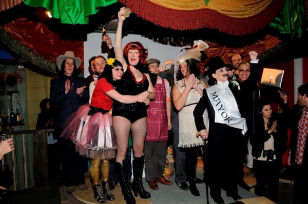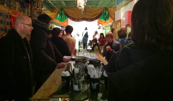What the village lacks in sophistication it more than makes up in energy, charm, and spirit. The centerpiece of the village is 37-foot-long table, which was built by Adrian Owen, Ian Montgomery, Jason Eppink and Chess Venis. The other participating artists built storefronts and domiciles from odds and ends found in and around the immediate vicinity of Long Island City.