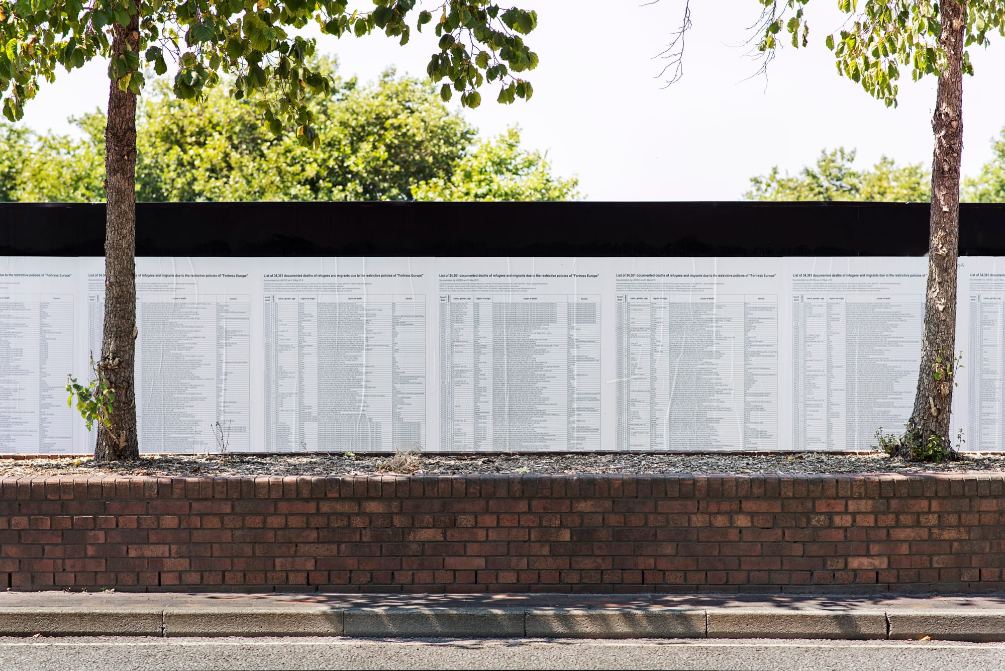 Banu Cennetoğlu was living in Amsterdam when she first encountered “The List.” It was 2002, and the 32-year-old photography student was researching the architecture of border posts for her degree. Compiled and updated each year by UNITED for Intercultural Action, an anti-discrimination network of 550 organizations in 48 countries, “The List” accounts for the deaths of more than 34,000 refugees who have lost their lives within, or on the borders of Europe since 1993. As an artist examining the materiality of migration, “The List” became an obsession for Cennetoğlu who immediately began planning for its dissemination across the Dutch capital. When she initially found “The List,” it was 15 pages long with only 6,000 names. For the 2018 Liverpool Biennial, Cennetoğlu stretched the now-enormous list alongside the city’s Great George Street. Seen in the United Kingdom, “The List” functioned as a commentary on the divisive, misleading, and misinformed immigration polices surrounding Brexit.