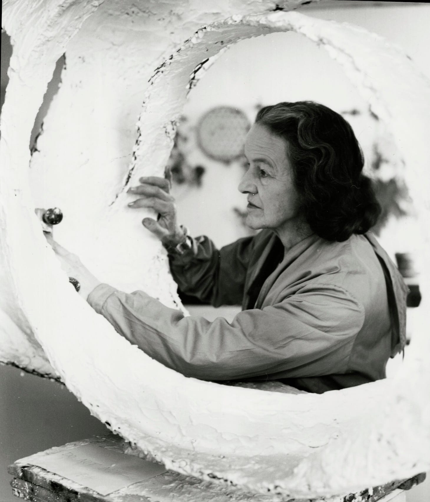 She trained first in Yorkshire alongside Henry Moore, and then at the Royal College in London. By the 1930s, she was in the company of a whole network of European Modernists, from Jean Arp (who seemed able to fuse landscape with the idea of the human form) to Brancusi. Her forms became more fluid. She began to make multi-part sculptures, where one form nestles into another.
