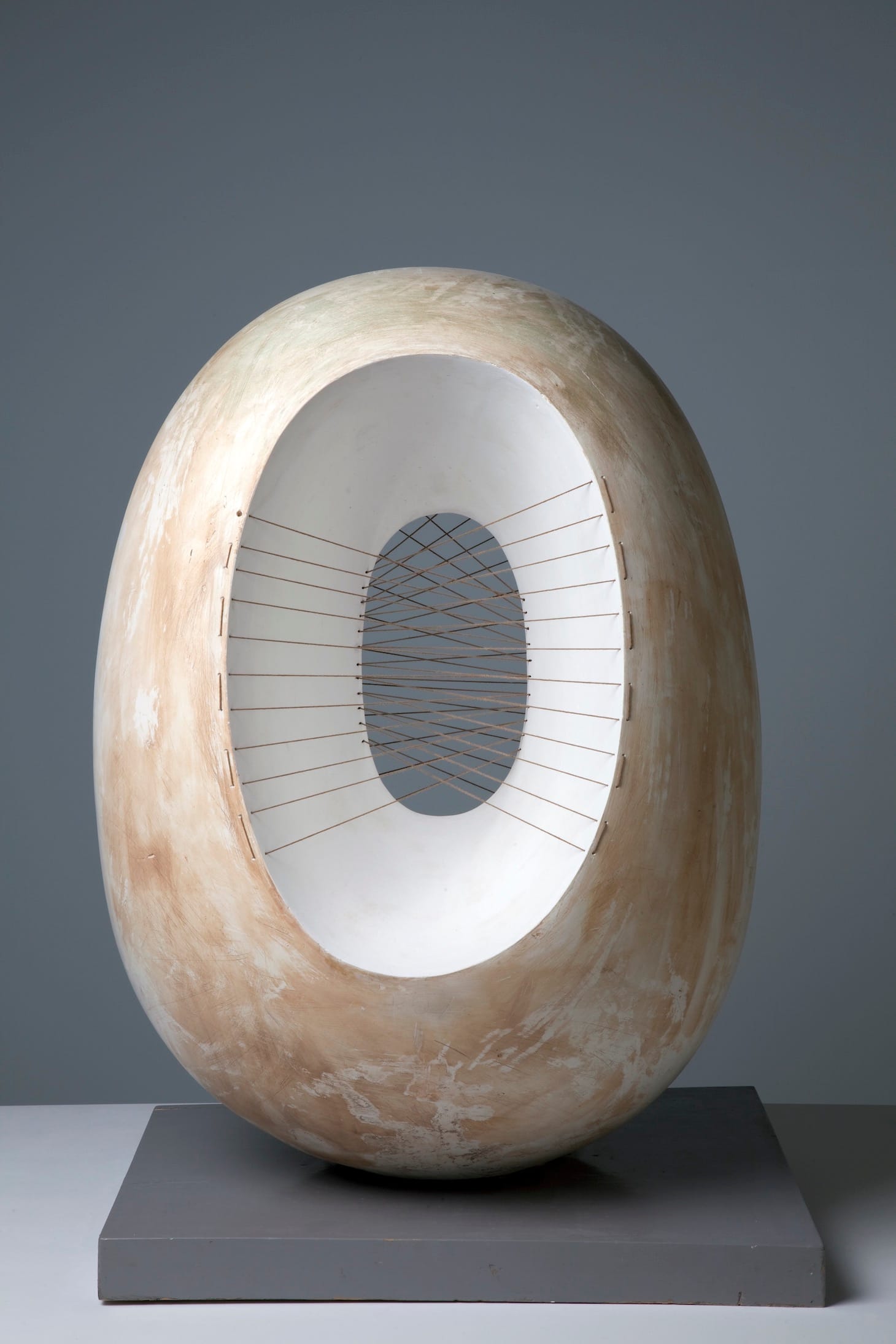 The Hepworth is also the permanent home of the Hepworth Family Gift, which comprises a selection of original plasters for a number of her major sculptures, including “Single Form” (1961-64), the monumental bronze sited outside the United Nations Building in New York, along with photographs, tools (gimlet, files, spirit level, T-square, cheese grater), a thoroughly pummeled work bench (she was a direct carver), working models, a cast of the artist's left hand (“my thinking hand,” she once said), and her own collection of ancient objects of inspiration, which include a stone Cycladic head and a female terra cotta figure from the early Bronze Age. All this marvelous maker's medley has been included in the exhibition too. The sight of it all laid out for our delectation thoroughly grounds us in her working life.