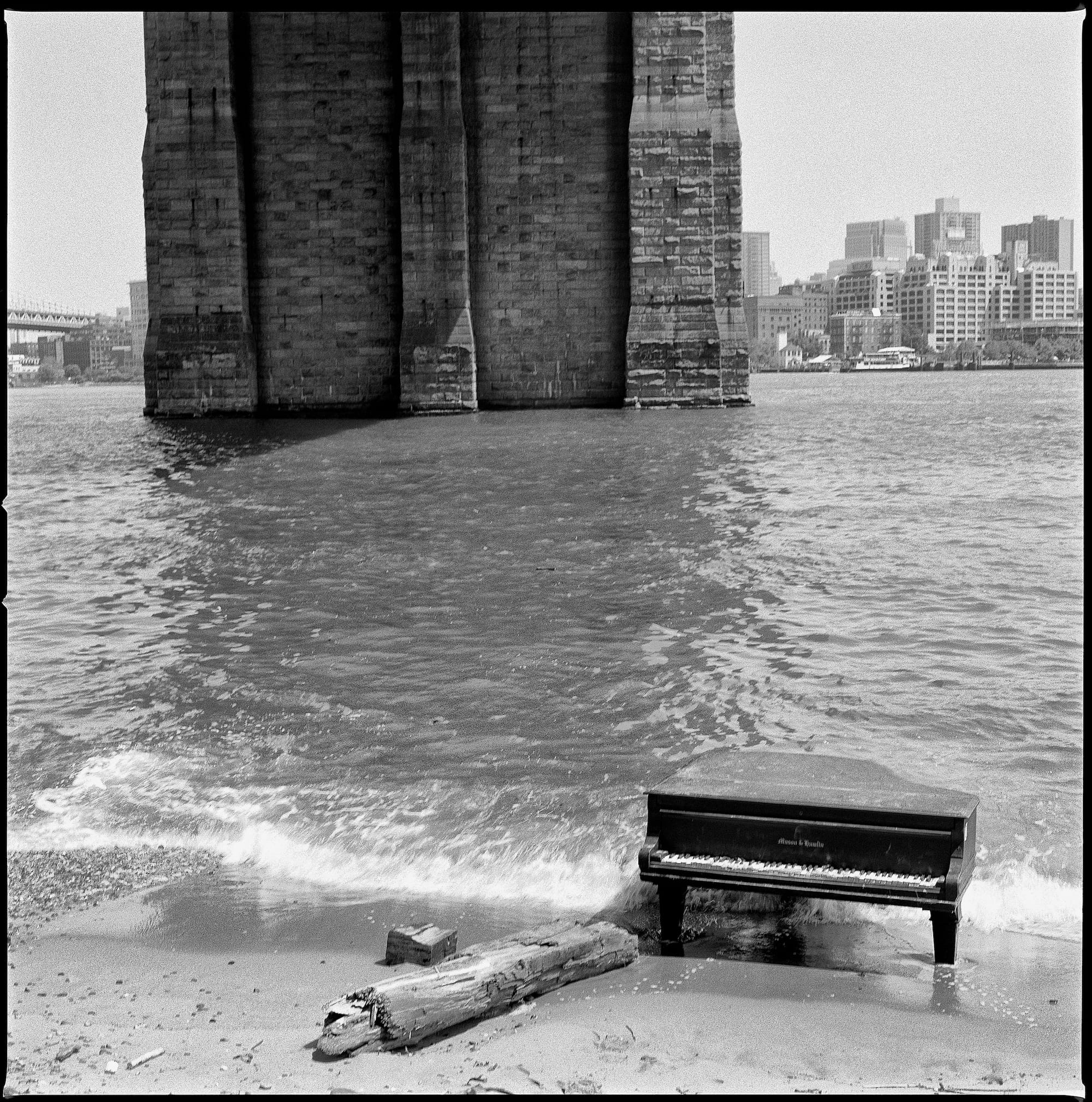 The Brooklyn-born artist has been photographing the Brooklyn Bridge in all seasons, inside and out, for several decades. In the 1980s, she moved into a maritime warehouse in Lower Manhattan beside its stone anchorage. Resolving to learn more about the bridge’s designer, she traveled to Roebling’s birthplace in Germany and traced his journey to the US to better understand what inspired him to envision the bridge. A close-up shot of its diagonal cables, which echo a ship’s sails, welcomes the viewer to imagine his 10-week voyage across the Atlantic Ocean in 1831, while a bird’s-eye view of a river carving through wilderness dramatizes his 300-mile canal-boat journey to Butler County, Pennsylvania. There, he established a village with other immigrants, several of whom assisted him in making the wire rope that was later used in constructing the great bridge.