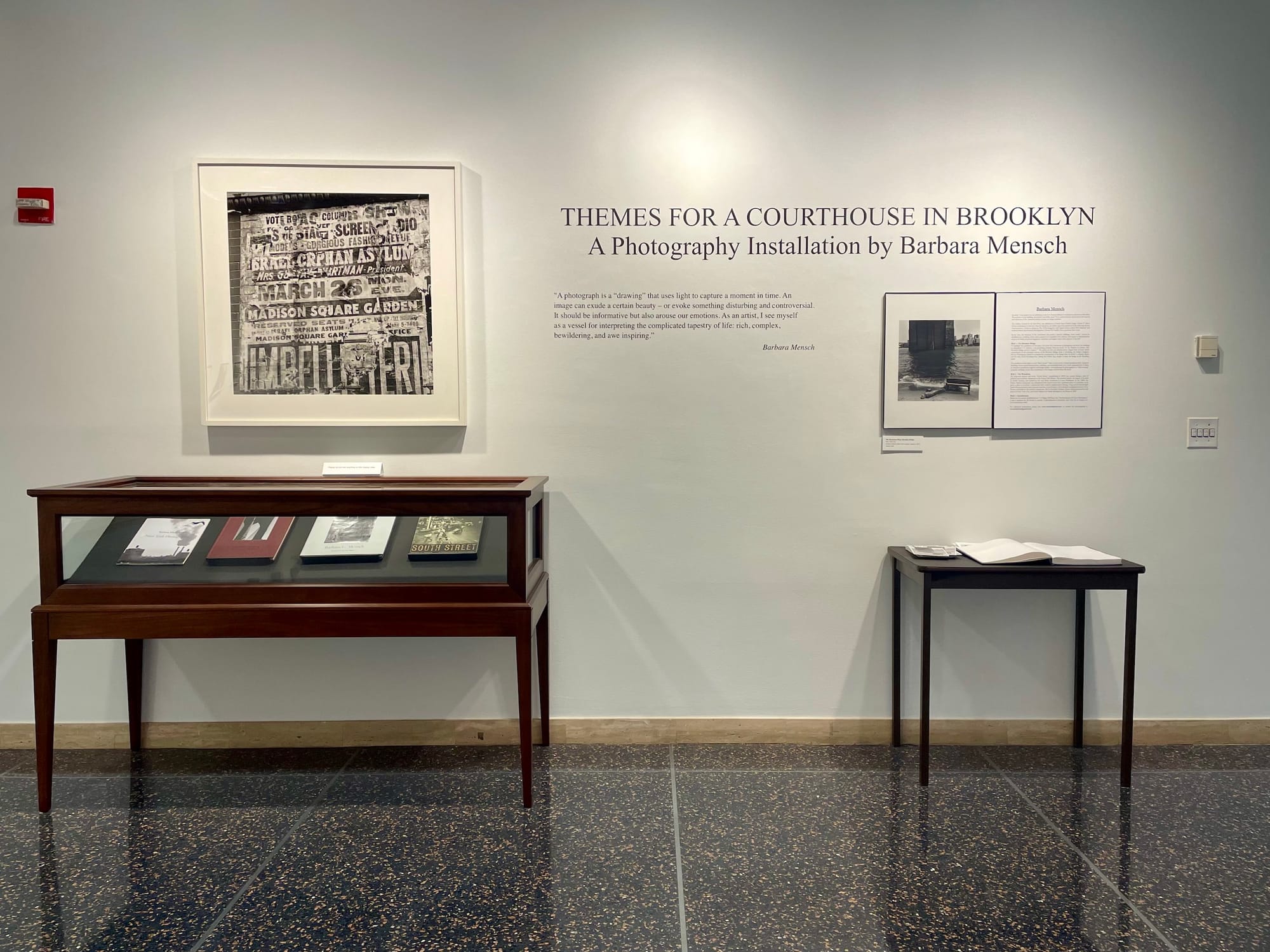 When Barbara Mensch was invited to stage an exhibition of her photographs in the public gallery at the United States District Court for the Eastern District of New York, curiosity led her to consider the functions of the court. Most of all, she was drawn to the magnitude of its naturalization ceremonies, when, several times a week, 100 or so people from across the globe enter a courtroom to become United States citizens. In response, Mensch drew on her 2018 book, In the Shadow of Genius, which pairs her own black and white photographs of the Brooklyn Bridge and its environs with the story of its creators. The 12 photographs on view, along with a pamphlet containing excerpts from her book, tell the epic story of the bridge’s designer, John Roebling, who traveled from a medieval town in Germany to create one of the world’s most treasured icons. Mensch was on a quest to understand the bridge’s inexplicable spiritual power.