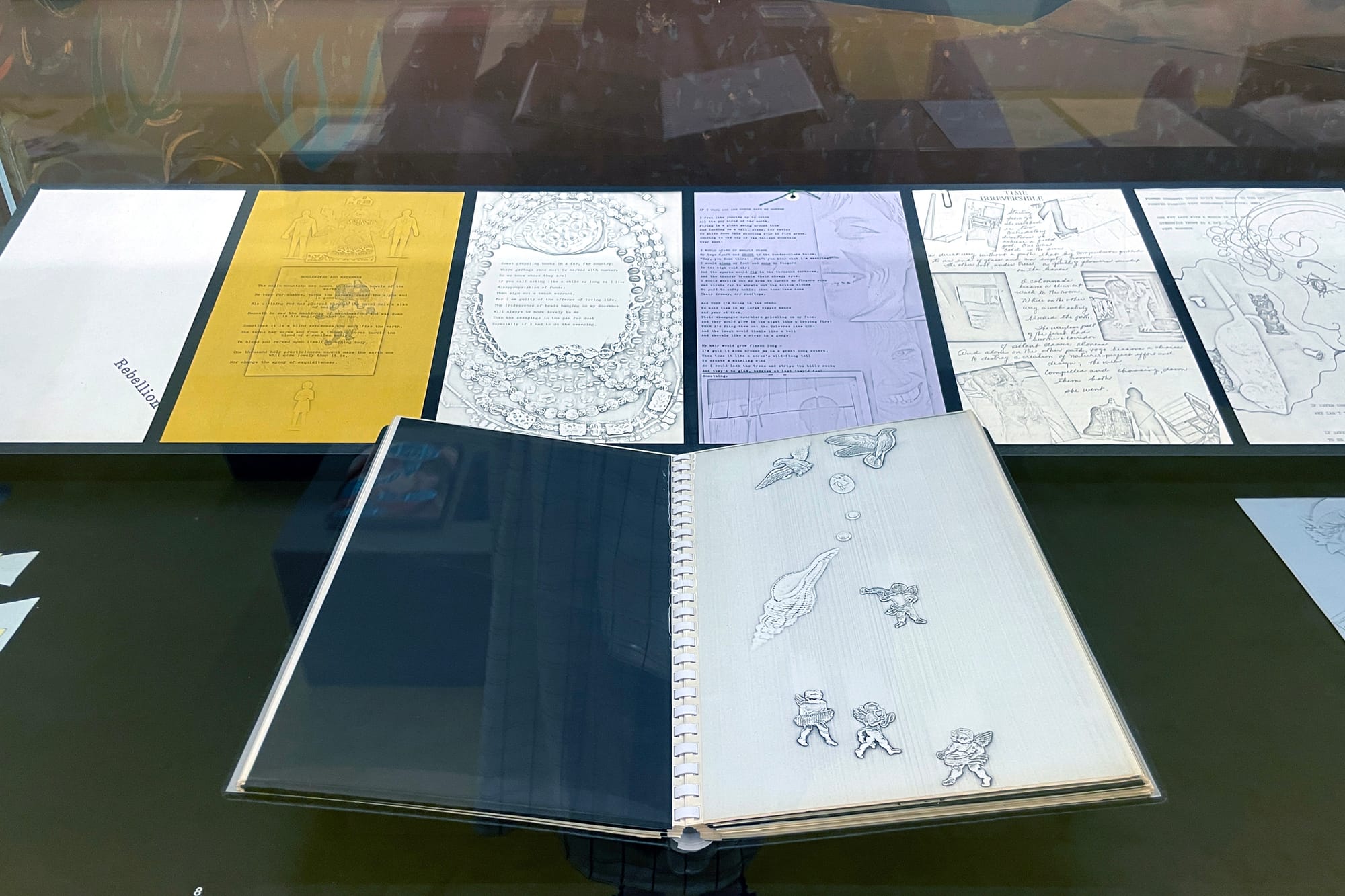 Most of these images were collated into publications. 30 spiral-bound books make up her Coffin series, and five unbound books create Poetry Set, which includes both “Joy” and "Rebellion" (both series 1965–66).