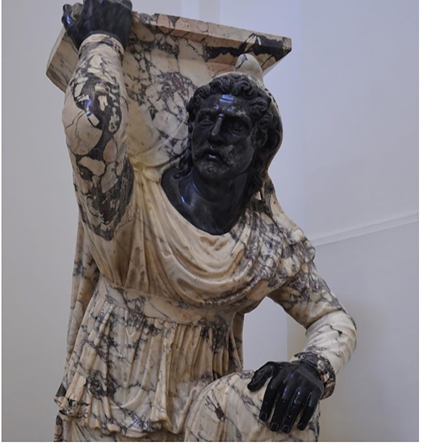 The Romans drew lines between themselves and the “other,” between “barbarous” and “civilized” with words, customs, and clothing. They also used color. Color was an important means of defining and depicting what was foreign. The use of colored marbles and of brightly painted patterns in Roman art were common orientalizing techniques that told the viewer when they were looking at a statue of a barbarian or a painting of an easterner. Variegated marbles — stones with particolored veins and naturally mottled patterns—contributed to the fictive creation of an East that lived only in the imagination of Romans, most of whom only ever experienced those lands through the prism of art.
