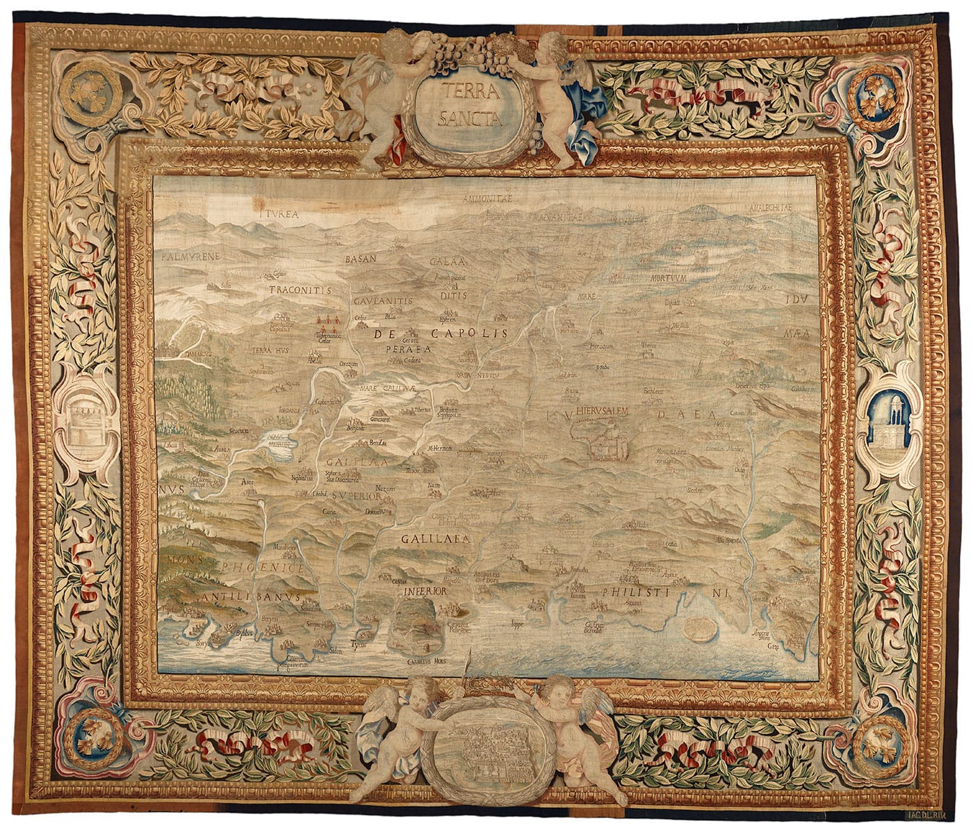 While in 2009 the tapestries of the “Crucifixion” and “Agony in the Garden” were lifted into the north and south transept arches for the Easter season, the first display since the 2001 fire, The Barberini Tapestries is a rare experience. It allows a proximity and closer engagement with the textiles through accompanying displays on conservation, context, and the Barberini family. Details like a faded four-century-old repair on the “Adoration,” or botanical flourishes on “Baptism” representing the life-giving power of the rite between John the Baptist and Jesus, are visible as never before. All 12 tapestries are explorable through an online interactive, including before and after images of the two burned tapestries, which lost between 30 to 40 percent of their scenes. The digital portal is hosted by the University of Oregon, whose Jordan Schnitzer Museum will open an exhibition on the tapestries this September 23.