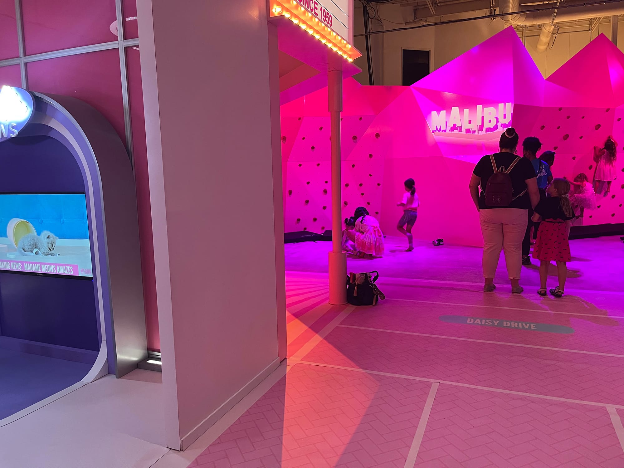 When we visited World of Barbie, my daughter had to be pushed around in a stroller and found the most joy in pulling herself up and obsessively toddling around a bench in the Dreamhouse’s courtyard. (She started walking less than a month later. Thanks, Barbie!)