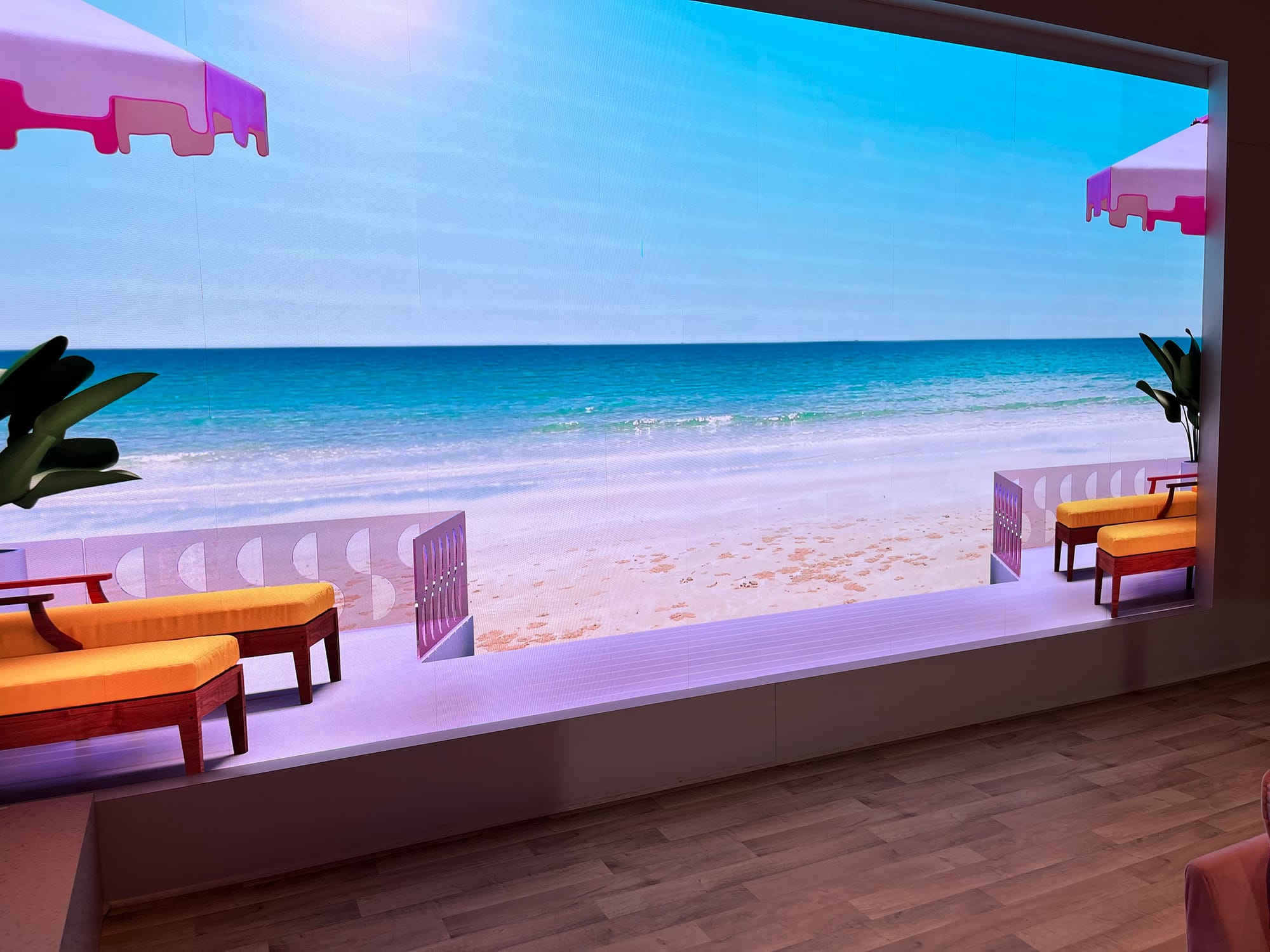 Entering World of Barbie felt like stepping through Oz, but the Oz that is Barbie: a James Turrell Ganzfeld-like diffusion of hyper-femme magenta pink.
