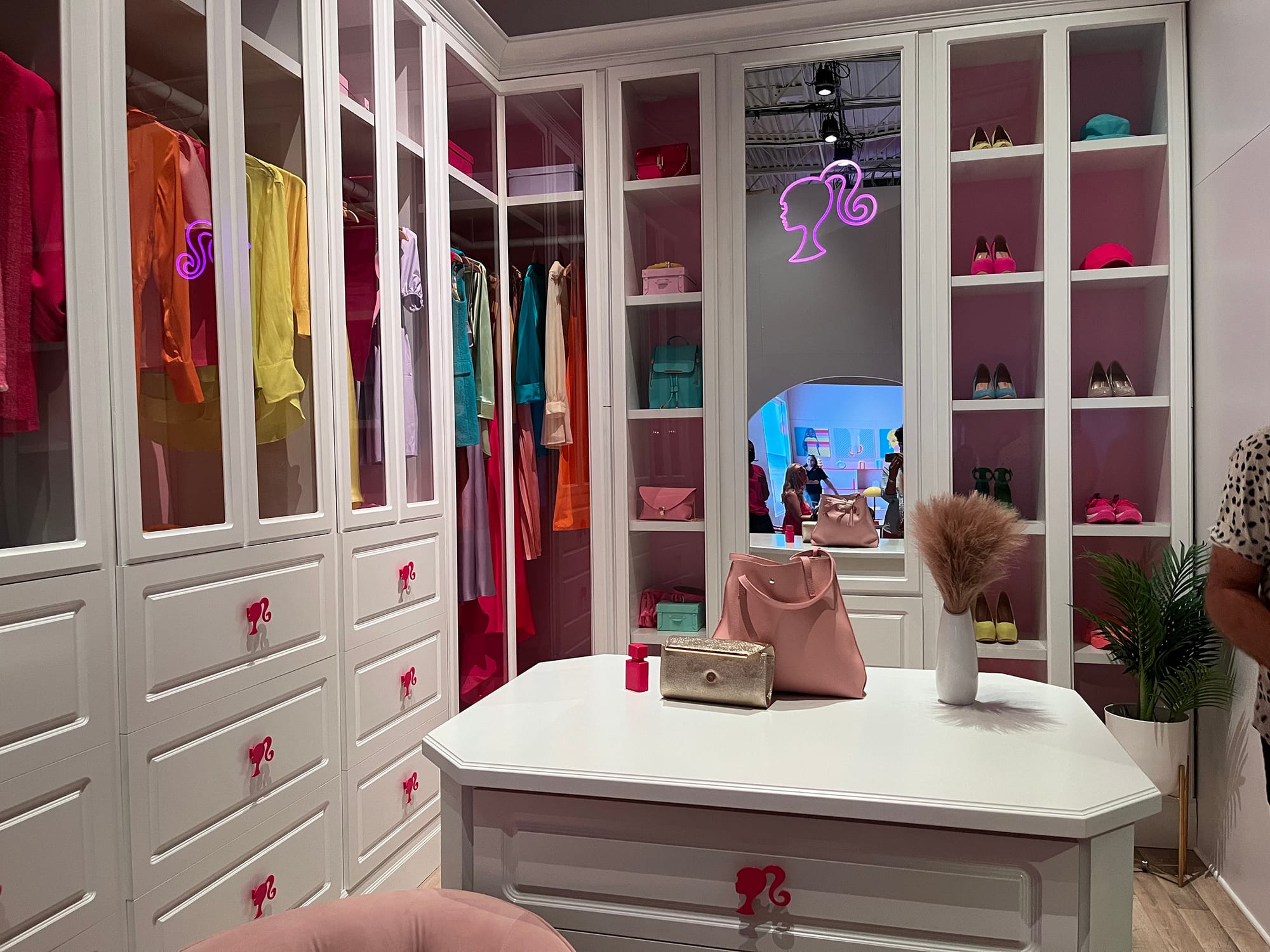 Then there was the dead-eyed stare of an influencer I encountered in the Dreamhouse’s walk-in closet, which felt like a knowing nod to Carrie Bradshaw’s walk-through thanks to the open (non-functioning) Apple laptop nearby.