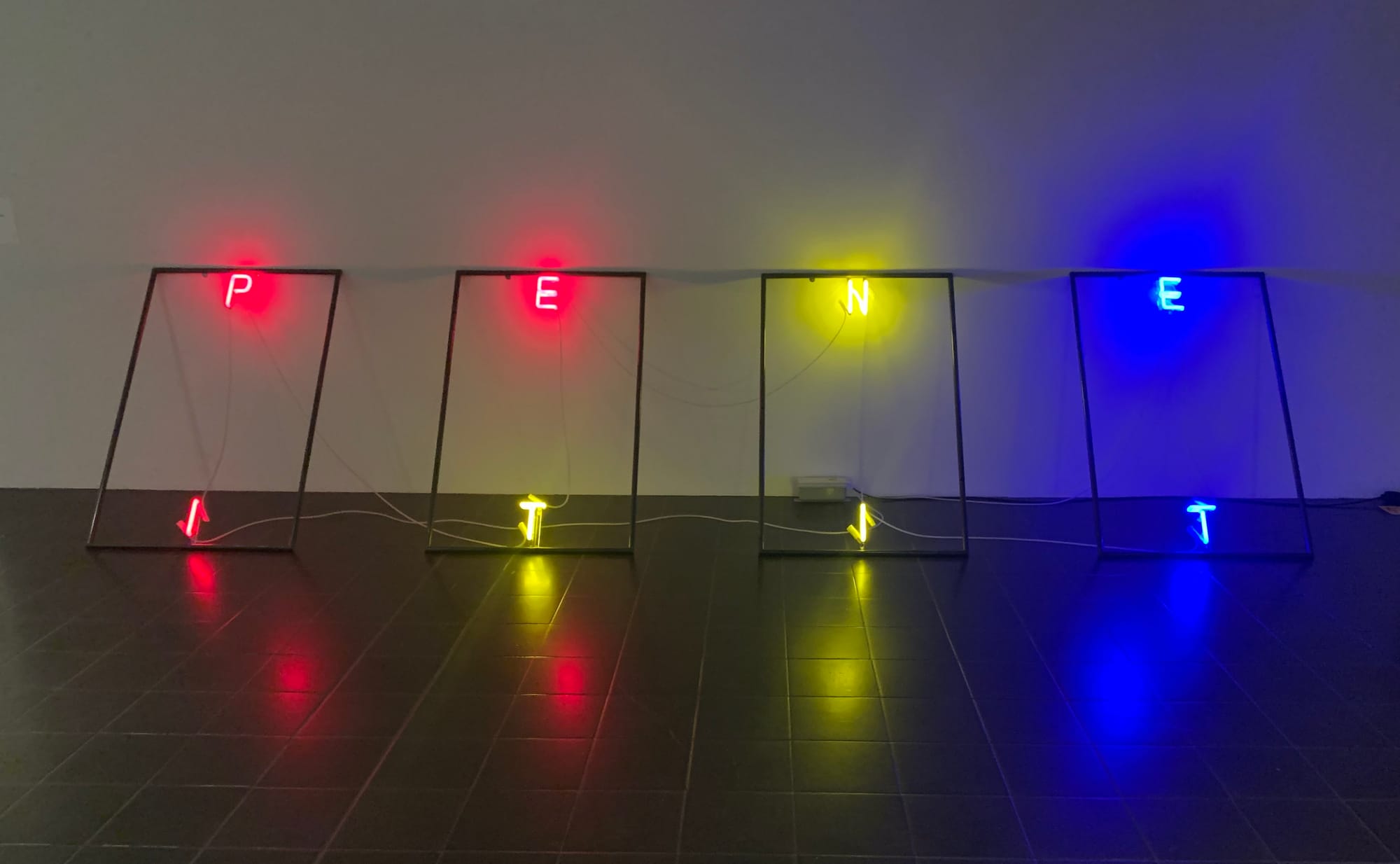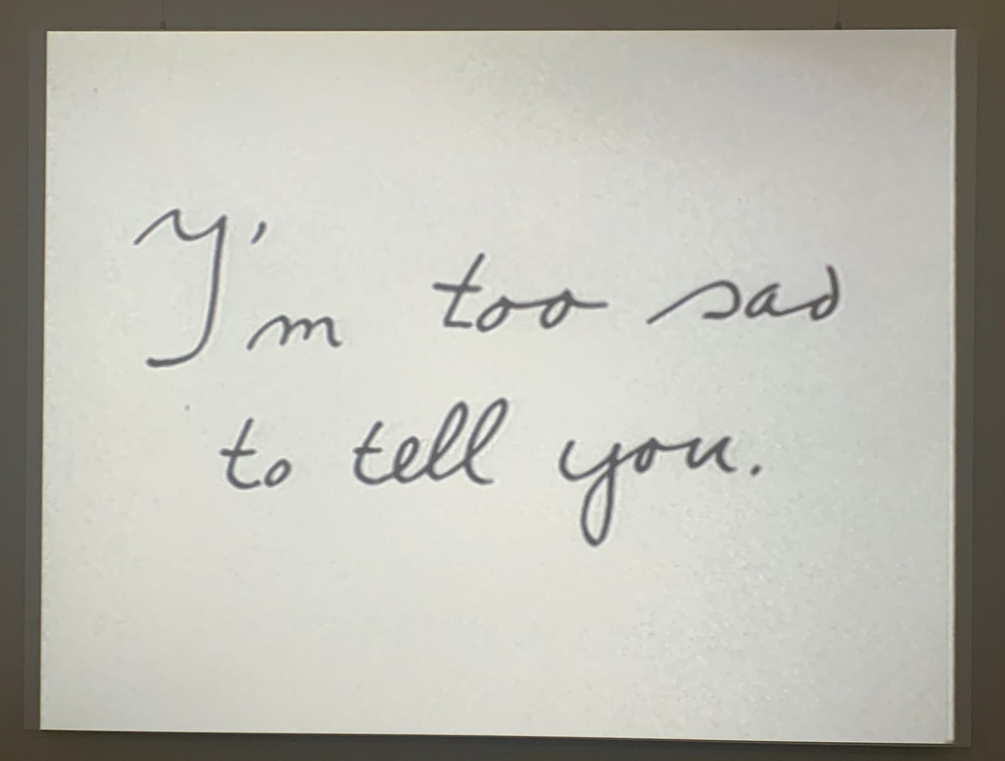 A half-century later, this and other works, all produced between the late 1950s and Ader's untimely disappearance, are the subject of I'm Searching …, a rare solo exhibition at the Hamburger Kunsthalle. The show is commemorative and comprehensive: Exhibited here for the first time are early works on paper from a portfolio recently found in Drieborg, Netherlands. Also new is a fabricated version of a neon piece in primary colors spelling “Piet Niet” — an homage to, and rejection of, Piet Mondrian, whose ideas Ader closely studied — which previously existed only as a sketch for a planned installation. But viewers get the artist’s greatest hits too: his four “Fall” videos from the early 1970s and, of course, the poignant “I’m too sad to tell you” (1971), in which an unspeakably pretty, young Ader — in a tight closeup on black and white film — weeps inconsolably and inexplicably for about three and a half silent minutes.