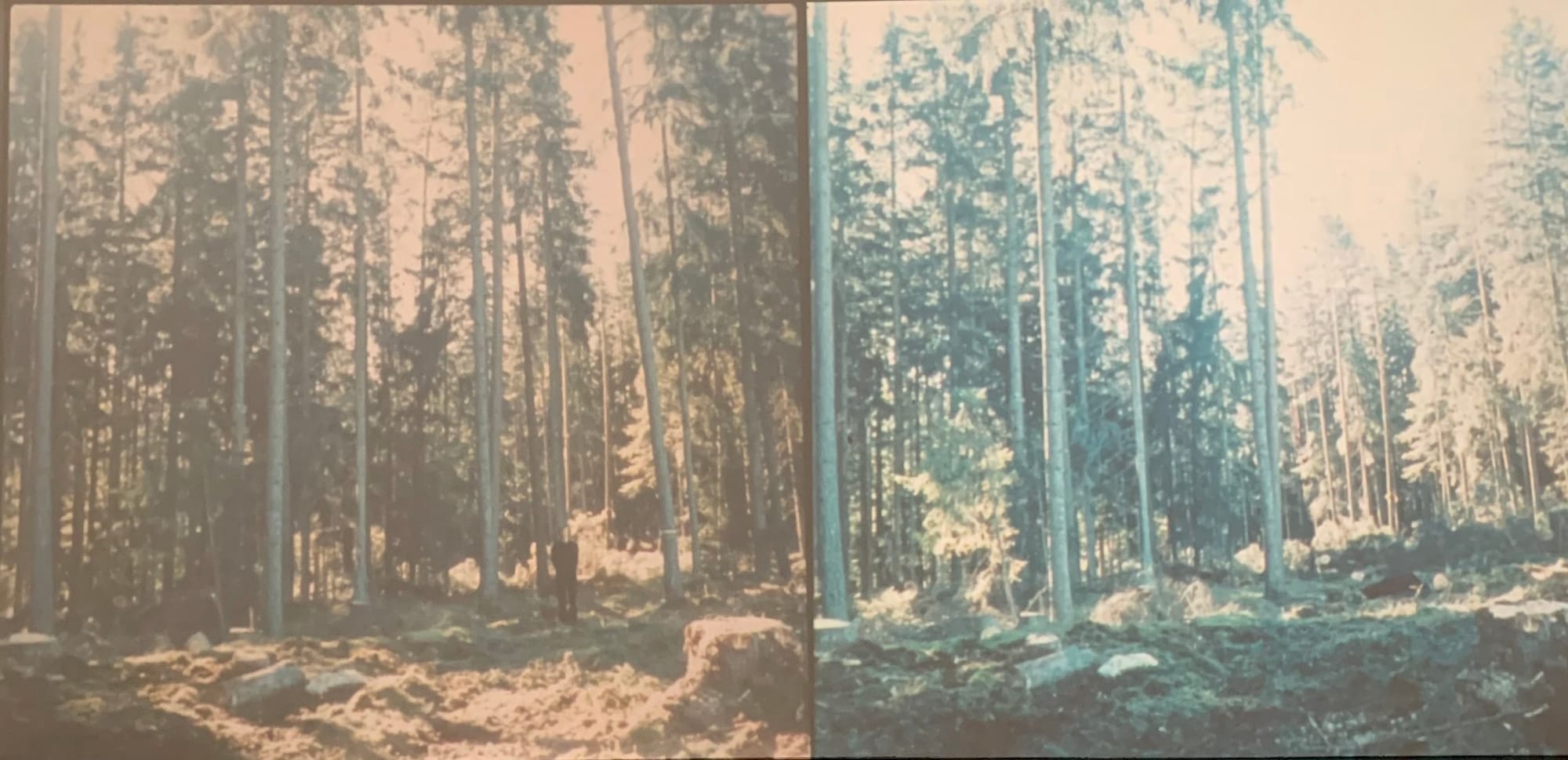 Falling as deliberate failing later becomes a recurring theme. The four now-iconic silent “Fall” shorts run on old 16mm film projectors in one large room at Hamburger Kunsthalle. In “Fall 1” (1970), Ader’s lanky body rolls off his own roof; in “Fall 2” (1970), he rides his bike into a canal in Amsterdam; in “Broken fall (organic)” (1971) he hangs and swings from the branch of a tree before falling into a stream. The action is a mix of slapstick and philosophical resignation. The two static projected images that represent “Untitled (Swedish Fall)” (1971) show Ader standing in a Swedish forest in one slide and on the ground, as if a felled tree, in the other; scholars have suggested that this piece alludes to Ader's childhood — in 1944, when he was two, his father was executed in a forest after it was discovered that he’d assisted Jews in escaping the Holocaust.