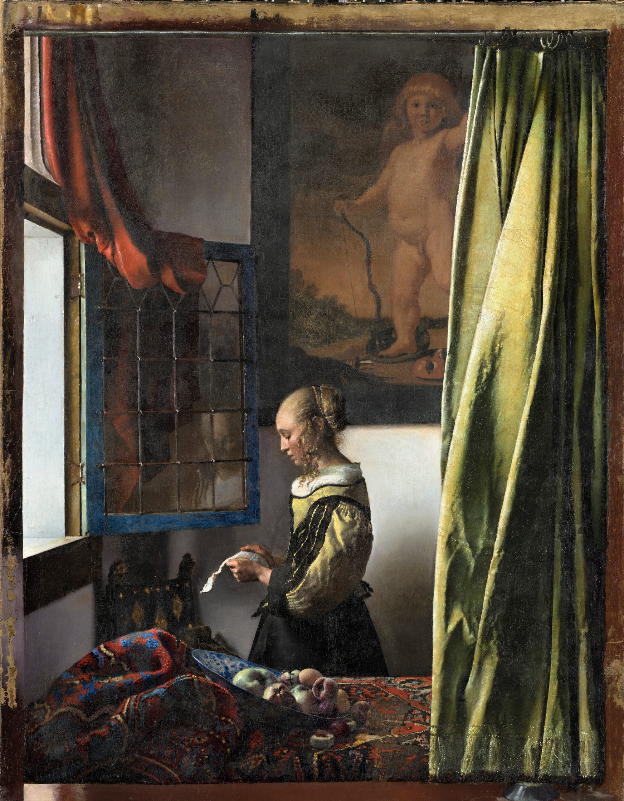 There is, of course, the beautiful catalogue, which details not just the works but the research conducted in preparation for the show. We learn, for instance, that Vermeer’s top patron was not Peter van Ruijven but his wife, Maria de Knuijt, who began purchasing his work around the time the artist started incorporating more secular subject matter. “The Milkmaid” originally had designs for a jug holder and fire basket that were later painted over to create the sparser background.