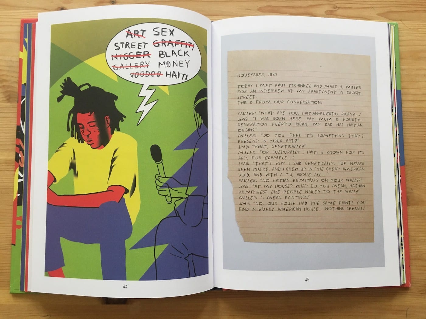The book opens dramatically with the police at Basquiat’s father’s door, notifying him of the artist’s death. With so many biographies and films about Basquiat, the story that follows is familiar: it paints a portrait of the ’80s downtown art scene to which young Jean-Michel fell prey. Featuring early accounts from Basquiat’s first curator, Diego Cortez (“Jean has something different, compared to the others. He reminded me of certain aspects of Cy Twombly and Franz Kline, but with this completely ‘pop’ sensibility”), and his on-and-off partner, Suzanne Mallouk (whose relationship with the artist is chronicled in Jennifer Clement’s book Widow Basquiat), the narrative flips between the perspectives of his peers to Basquiat’s own, giving the book a choppy pace suited to the ups and downs portrayed.
