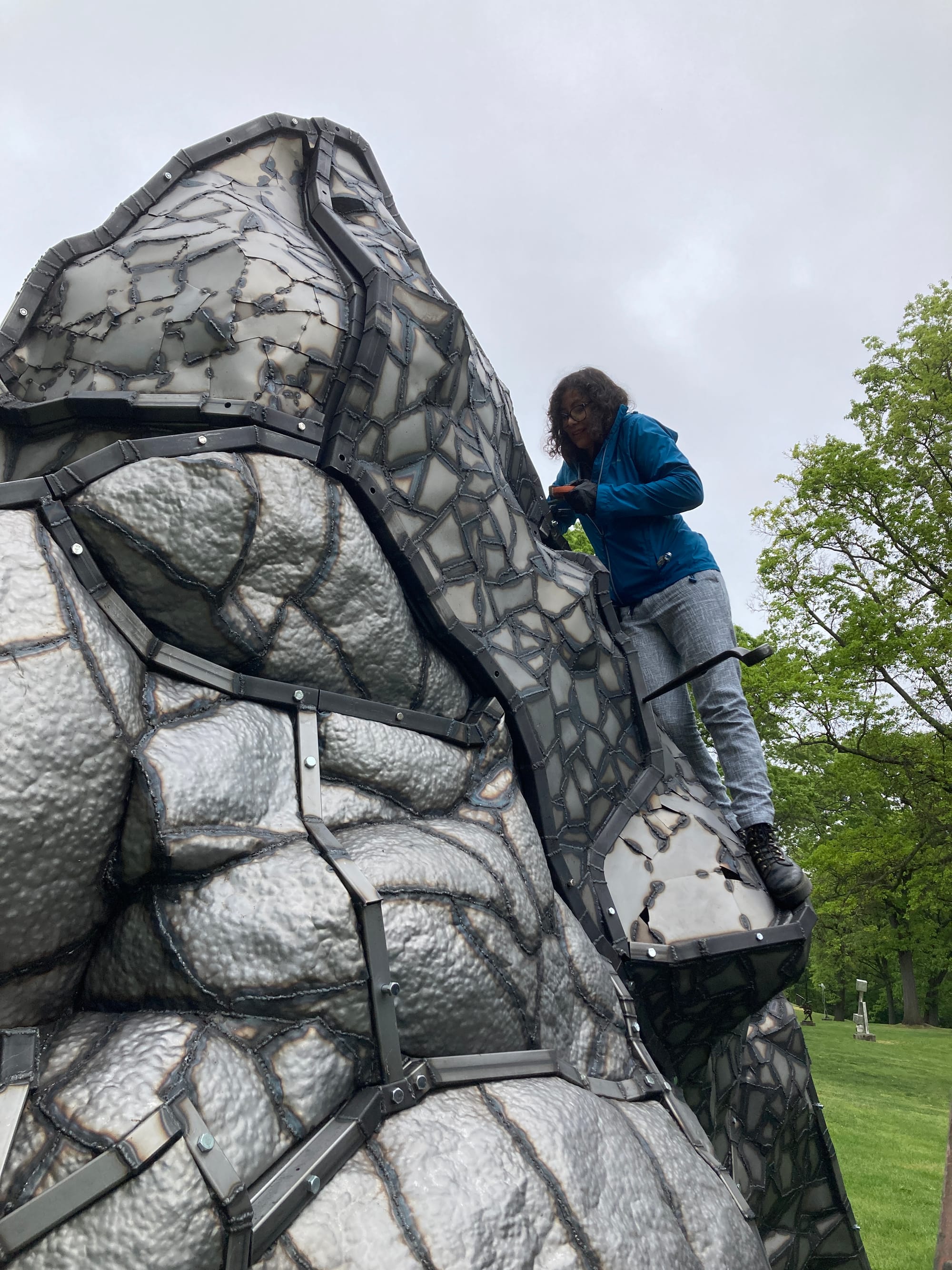 During a recent visit to her LA studio, Cortez said she views the sculpture as "a metaphor for the migration of land and people" — from the displacement of the Maya centuries ago to the forced exoduses today due to war, poverty, and environmental disasters — as well as a reference to the glacial tectonic shifts that create new lands and borders over an exponentially longer timeframe.