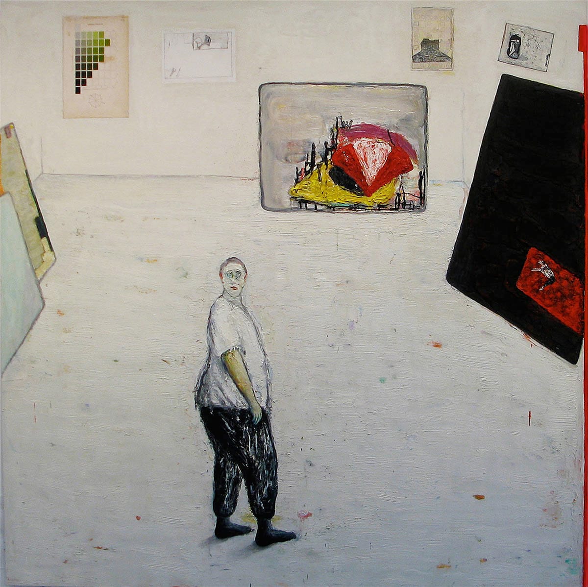 Philip Guston came to my studio once when I was in Detroit. So many aspects of his work resonate with me. For example, I used to have a lot of anxiety around the telephone — wondering if people were going to call me; when they were going to call me. Then, one day, I was looking at a book on still lives and there was a painting by Guston of a single black phone on a table! Years after Guston died, I went to his house in Woodstock. He had a cabinet full of cadmium red paint, and his daughter gave me a couple of tubes.