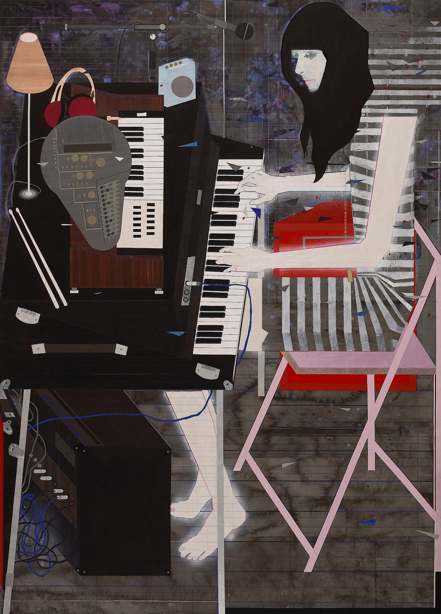 CF: When I am coming up with an idea for a painting, I search for one song that sounds like the painting I’m trying to make. I am not synesthetic, but the song can help me imagine a color that the painting needs to be. Then I put the song on repeat while painting. I do this because I find it impossible to take handwritten notes or sketches for all of the things that need to happen in a painting. Our mind moves faster than our hands.