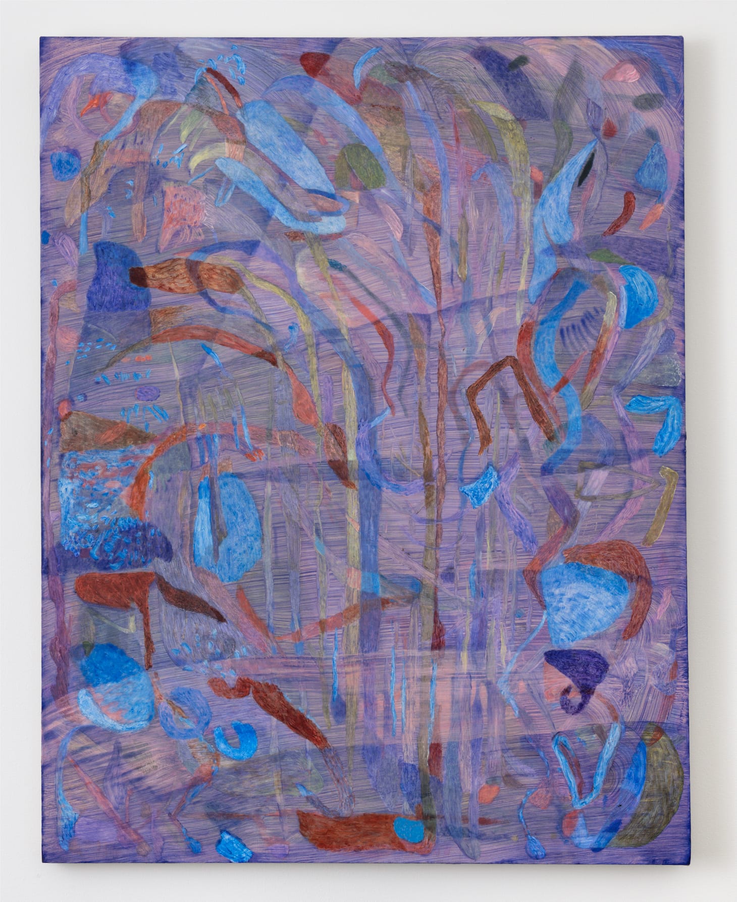 Grill was the subject of a recent exhibition, There's the Air, at Derek Eller Gallery, New York, where she showed paintings of different sizes, each one residing in what she has called a specific “color climate.” Also on view were works on paper that respond to antique embroidery samplers. The drawings can suggest barely legible handwriting. The paintings take off from these sources, gathering families of marks and shapes. Their brushwork interacts with the tooth of the linen and exposes luminosity underneath. They radiate with a joy of making, an awareness of the imperfections and complexities of everyday life, and also a consciousness of what is beneath the surface.