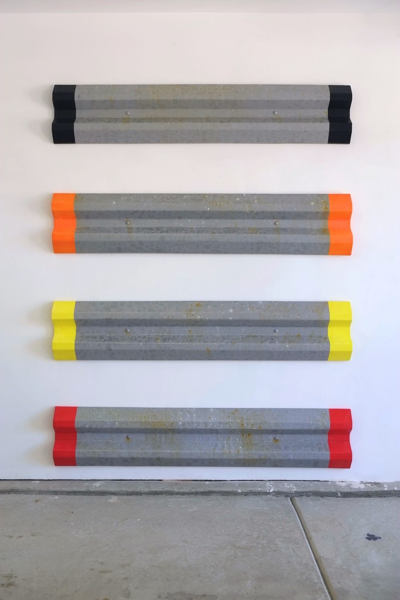 JS: Your dimensional paintings, like the road barricades, at first glance present as sculptures. But when you see the backs of them, it is clear they are paintings. Is this something you consider?