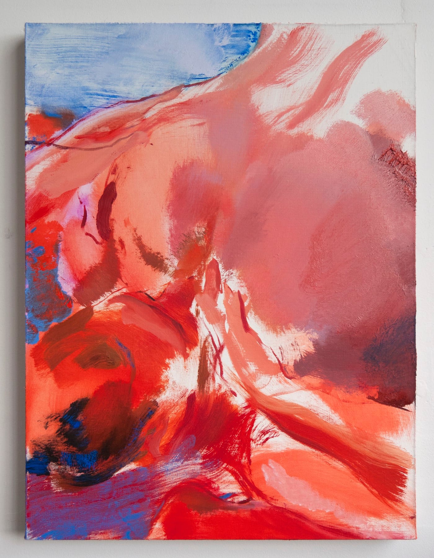 The first time I worked with subject matter that I cared about was after a visit home to Israel. During my visit I met up with the guy I was hanging out with at the time. We made a video of ourselves hooking up – just for fun. Then, when I went back to school, I thought the space in that video was really interesting and decided to draw from it. I wasn’t even thinking about the sexual subject matter. I told myself it was a formal exercise, that they were figures, and that I was a figurative painter.