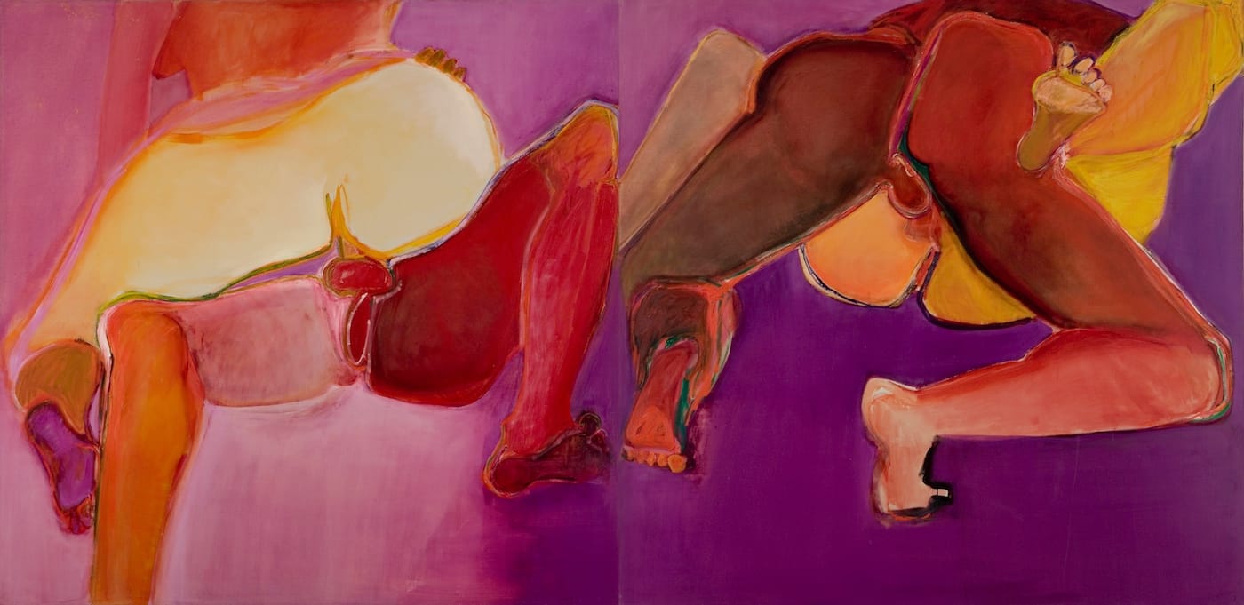 The first group of sexual work was expressionistic with high gesture and high color. Then, I realized I needed more information and couldn’t work only out of my head. There was a man I was steered to; a friend told me he was a bit of an exhibitionist. It was an experimental time about sex, and it was before AIDS, so it was a very different time.