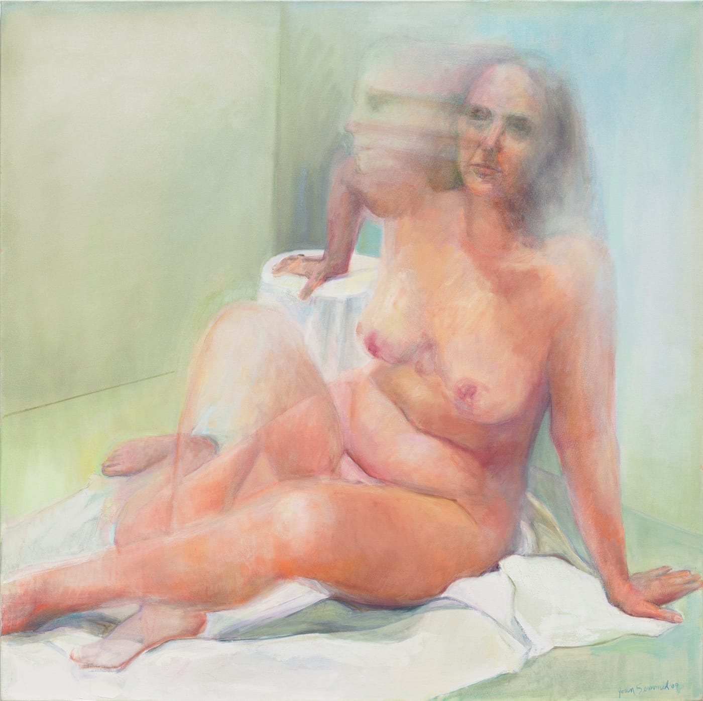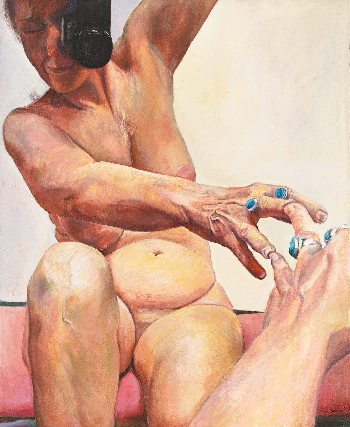 J. Semmel: I’m branded as a painter of the nude, although I’ve done other things. So that is where I have to stay. Otherwise, I won’t get seen at all. But the nude is a problem for me at a certain age, because where do you go with it? I’m not sure exactly. That is why I recently made a painting of myself that revisits the format of work from the 1970s. I wanted to see what would happen. I have to take a chance. I don’t want to get stuck in the pathology of aging; I want to do the reverse. I want to normalize age. How does one do that and still be seductive? That is what I’m thinking about.