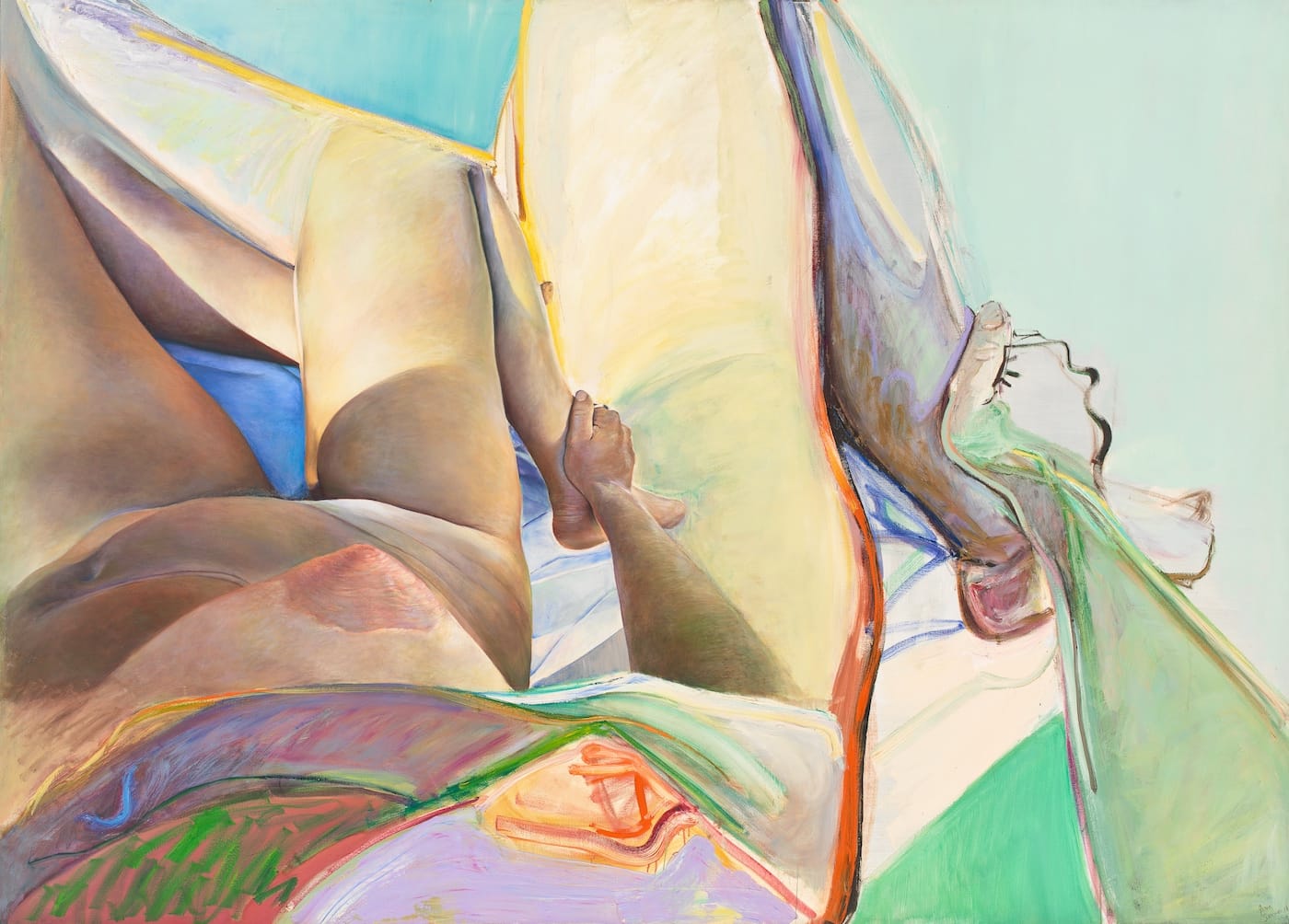 On a July afternoon, Joan Semmel and I met at her home in the Springs, on the East End of Long Island. She asks what I’d like to drink, and I tell her I’ll have what she’s having. “Well. Beer is what I like to drink in the middle of the day,” she says as she opens two Coronas, and starts to talk, without reservation or hesitation. Semmel is direct and cool; she knows what she’s about. Nothing — not her conversational manner, the décor of her home and studio, or the paintings — is over-adorned or romanticized. It’s as if all that energy is channeled into the paint itself, where she focuses on the nature of touch: the touch of skin and the touch of color.