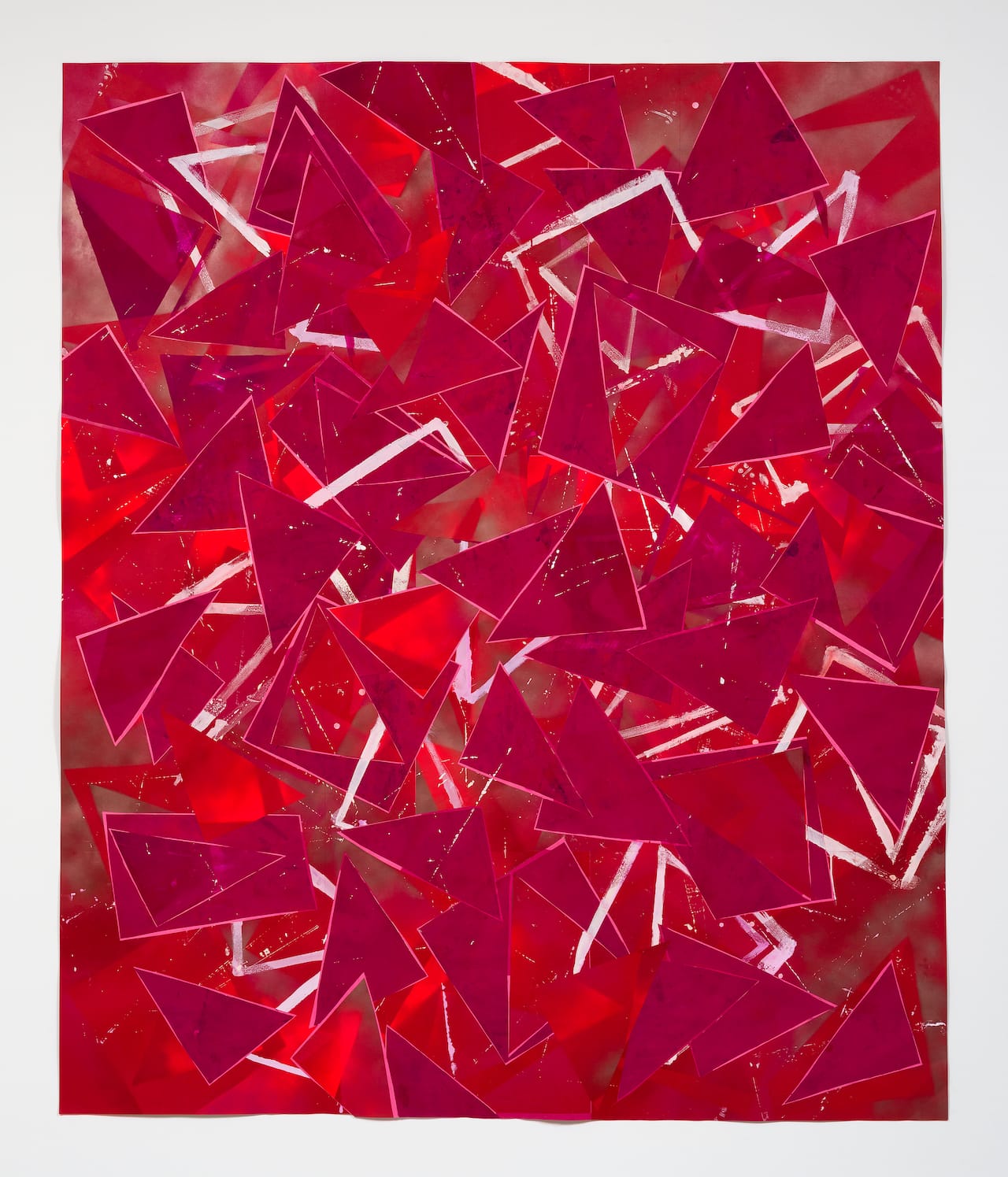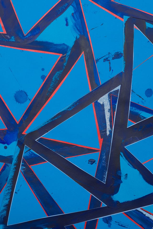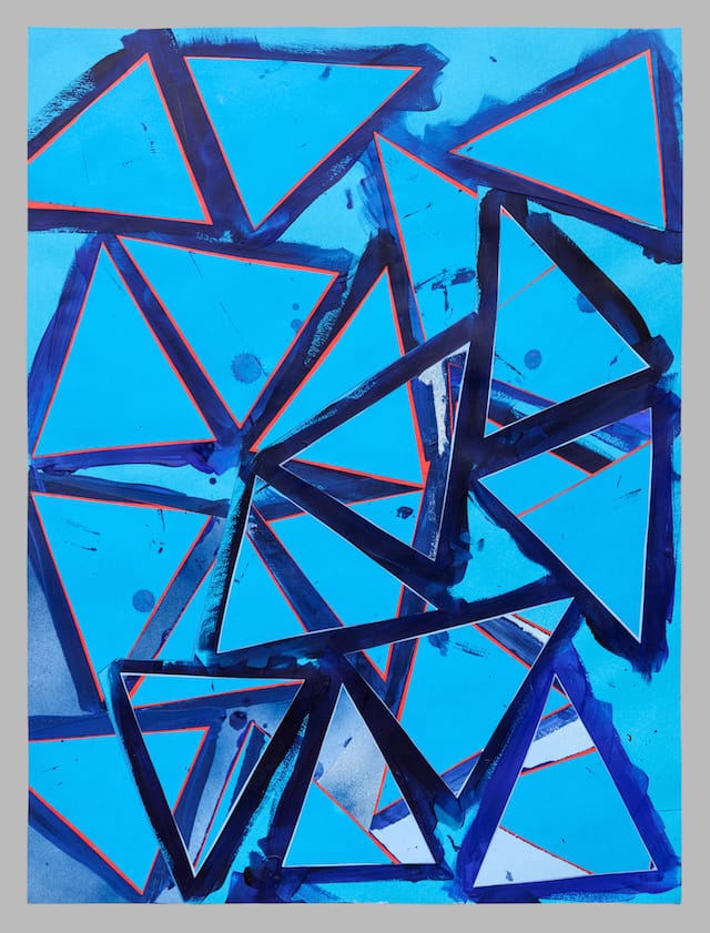 LD-R: I start off with remnants. The remnants are organized according to material and scale and shape. There is vellum, cardboard, and paper cut from other pieces. I have boxes of triangles; I have boxes of stencils of the triangles – so there are the opposites. They are scraps with potential. They were cut out of one thing, but saved with the intention to be recycled. I will usually imagine a piece made out of certain elements.
