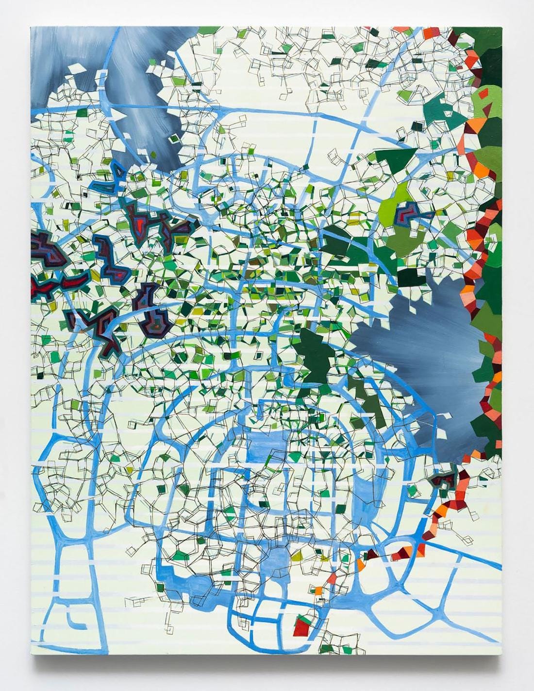 LCD: They are about mapped spaces, and about how we understand space: mental space, physical space, painting space. I think about all those things and how we navigate them. They are also about growing up with an indeterminate history. Many African American histories are lost, so you have bits and pieces.