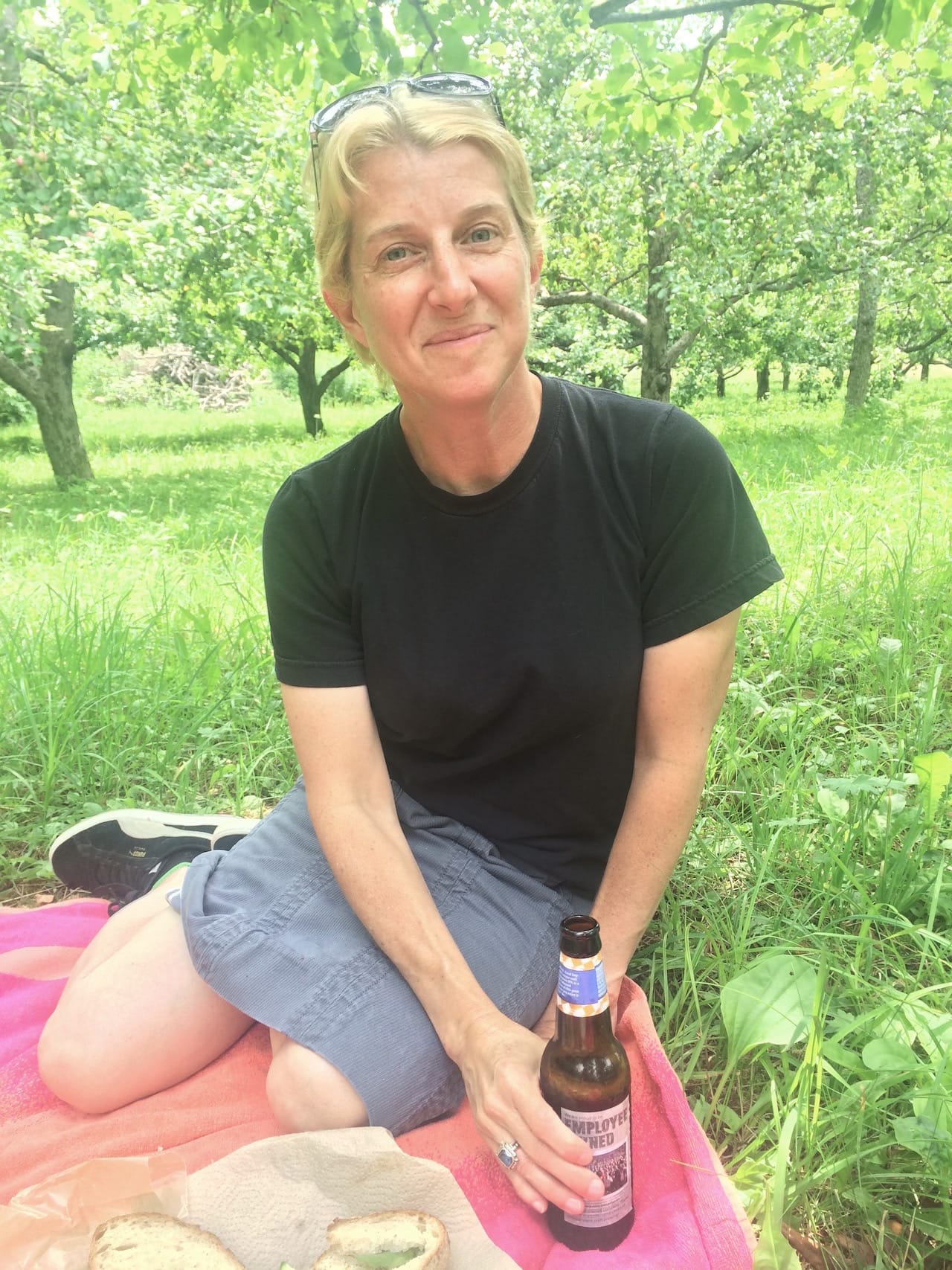 Lucy Mink Covello lives in New Hampshire, not too far from where I spend a couple of weeks every summer. We met at my friends’ farm, spread a blanket under trees in the apple orchard, and shared some beer, bread, and cheese.