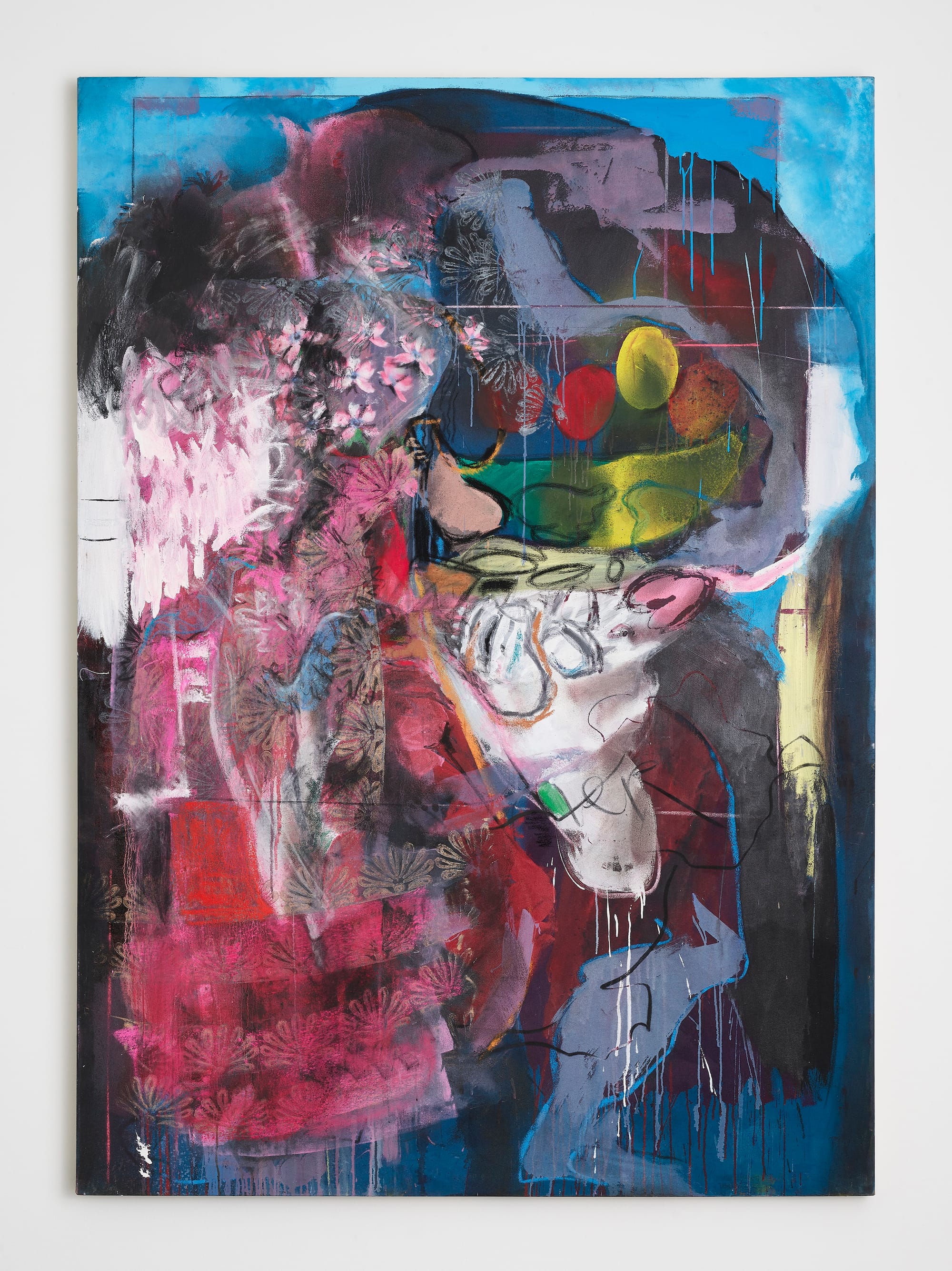 Lovelace O'Neal's paintings are rife with big marks and energetic movement, acting as declarations of presence in spaces where she wasn’t welcome. In her early Lampblack series (late 1960s), she encased the fibers of her canvas with the titular powdered black pigment before moving across the entire surface with linear color. Her Whales Fucking series (1979–early ’80s), on the other hand, considers the water displacement made by the aquatic mammals. Other work homes in on the subtle ways women subvert rules and move through repressive societies. She balances abstraction and recognizable motifs, layering elements with emotional density: beauty and pain dancing together.