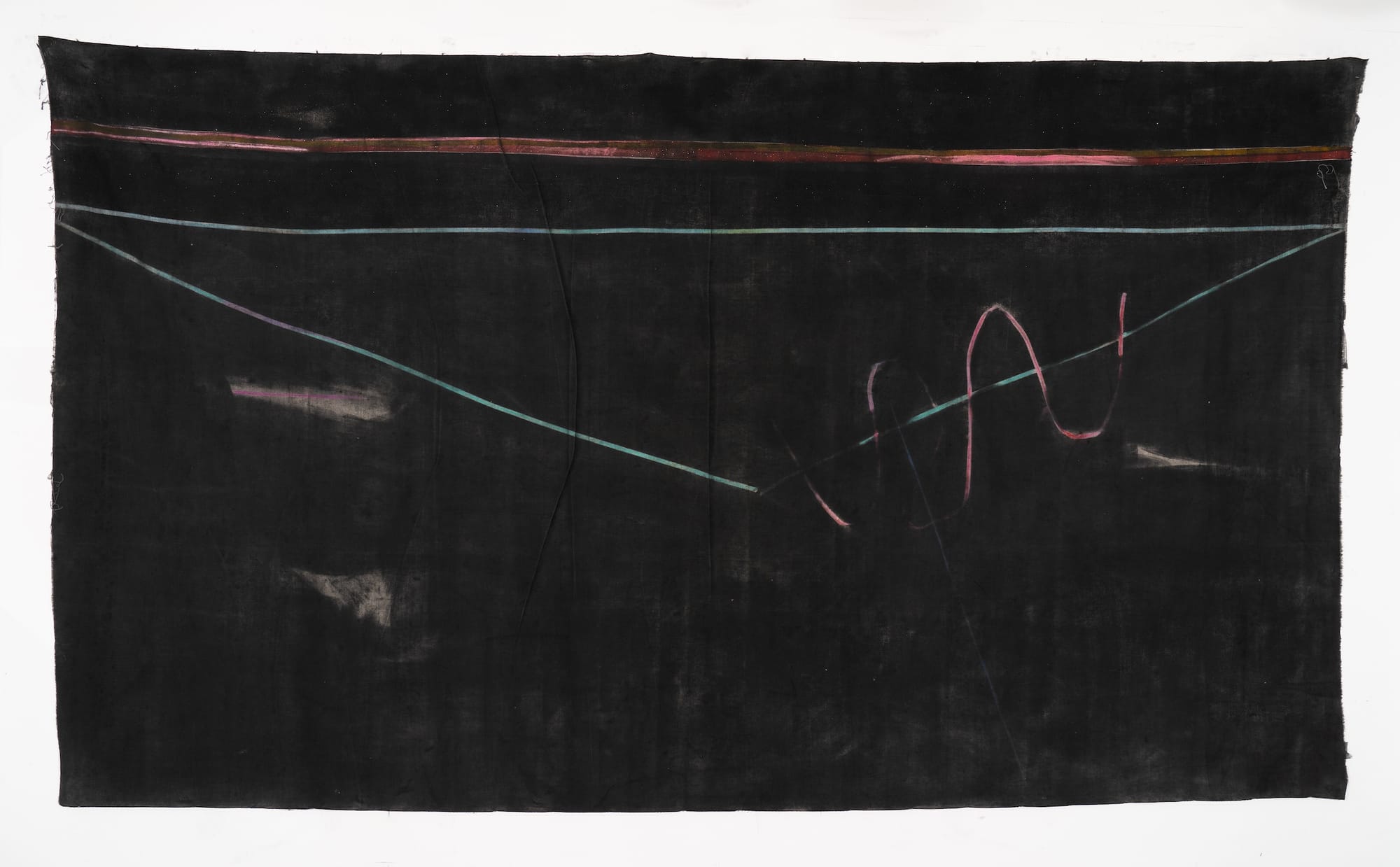 The pigment sat on a shelf in my Columbia studio for weeks. In the meantime, my husband had prepared some big canvases. I kept looking at the pigment, and at those intimidating, blank, white canvases. Eventually, I realized I could do the slashing and dripping and cover it up with black. I could go back in and pull up bits of color. One day, I poured a bag of the black powdered pigment into a bowl. I finally had the nerve to go all the way through the canvas.