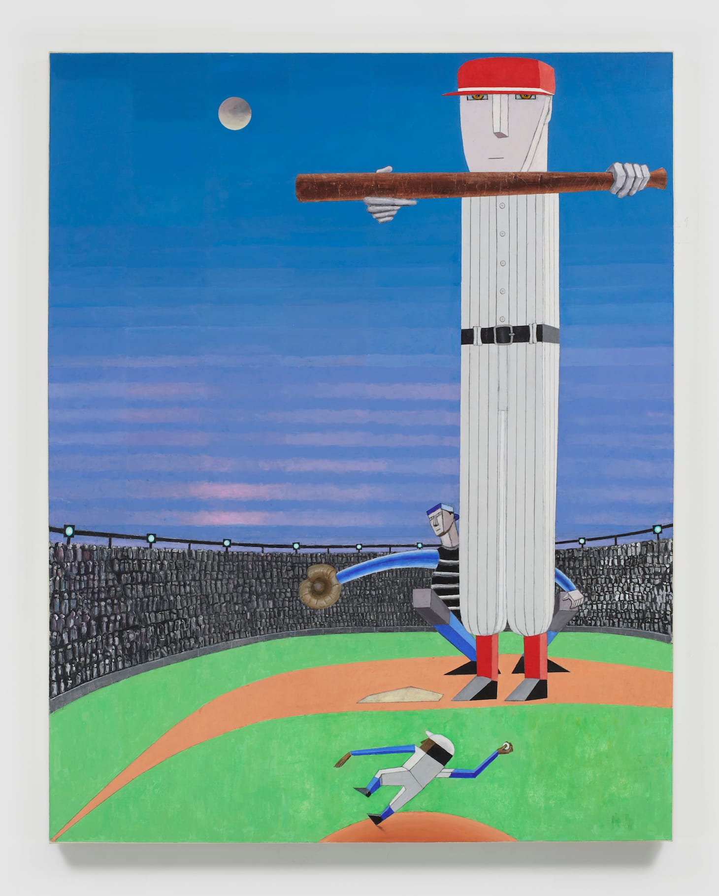 JS: Your baseball painting, “Bunt” (2016), shows a massive, totemic batter. How did that composition develop?