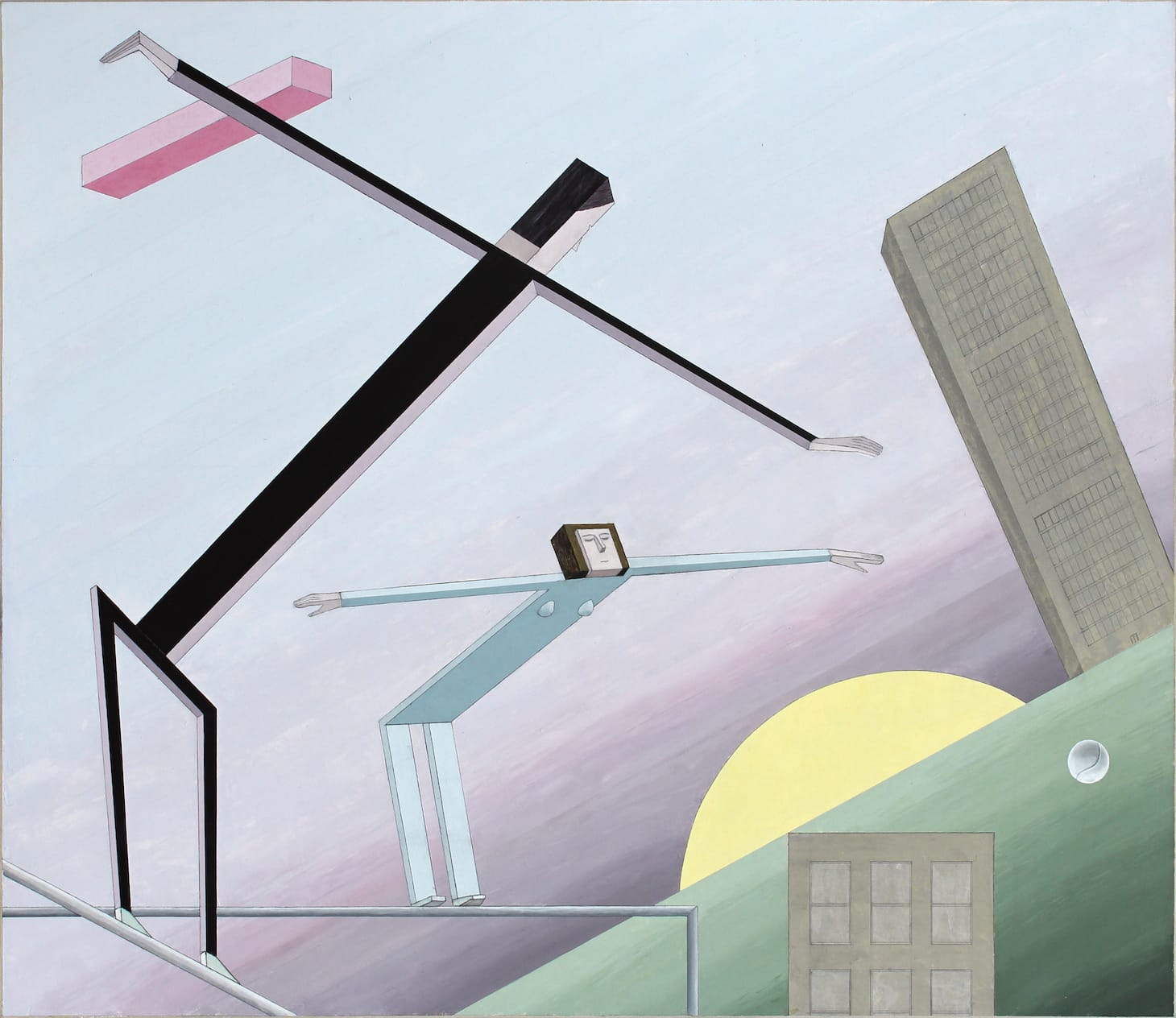 ML: I call them characters. When people first look at them, they might think they are robotic, or schematic, or computerized. But when I look at them, I think of them as characters who live in the world of that particular painting. Also, my link is to Renaissance painting. Renaissance painters often began with a geometric drawing as they painted figures. Ultimately, the characters in my work developed out of the sources I was using. If I used El Lissitzky as the source, I tried to see how little I could change.