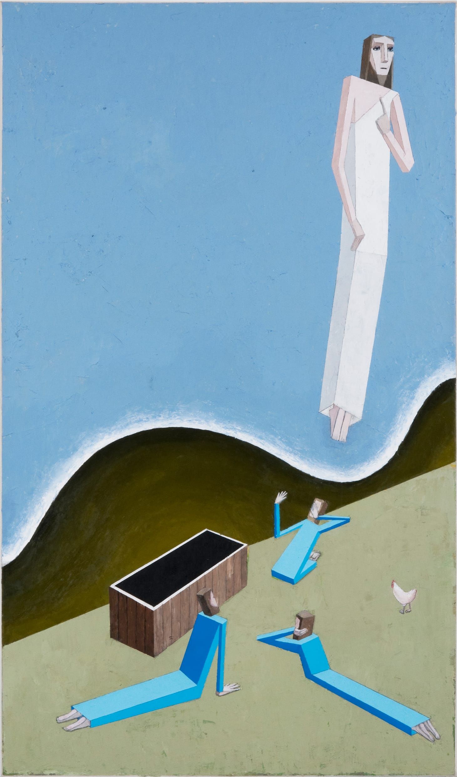 Similarly, I did not begin the painting “Departure (After El Lissitzky)” (2019) with the intention to express something about global warming. I just liked the idea of all of the characters leaving. The penguin is going along with the characters, as if it’s the most natural thing in the world. That struck me as very funny. Of course, later I realized it could be a metaphor for global warming. Everybody is leaving; even the penguin has to leave.