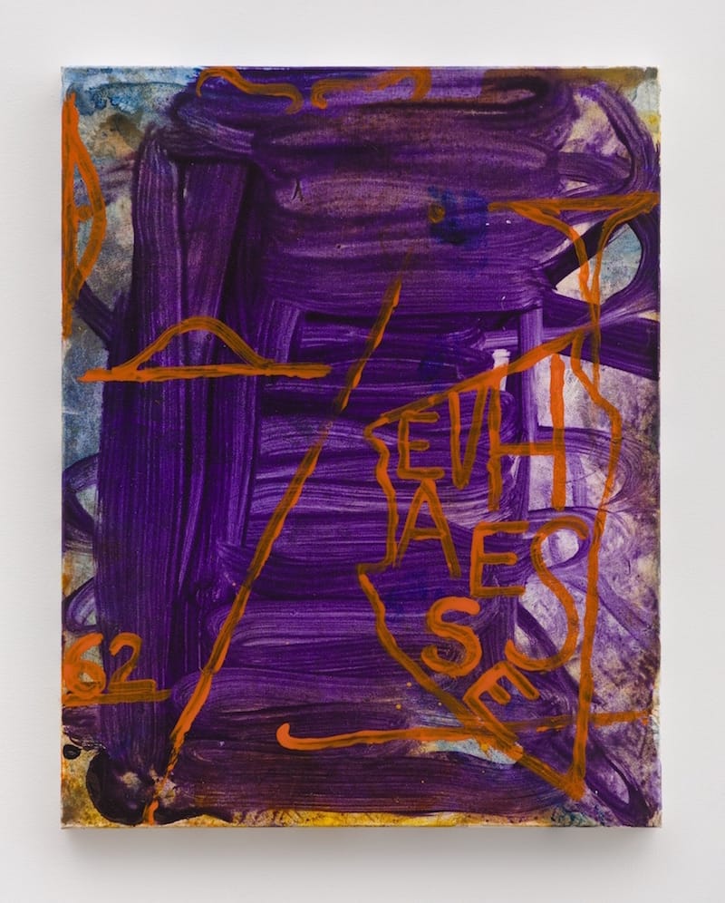 JS: You often write the names of other artists right on your paintings. It’s like announcing your influences. I was thinking about how you like Julian Schnabel, who seems to be an artist unafraid of taking from other artists. Can you talk about that, and some of your other artist heroes?