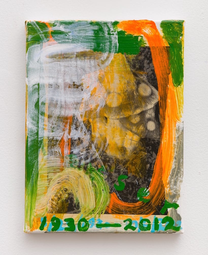 A similar combination of rawness and sensitivity is what gives Acheson’s work its potency and range. His paintings are ravaged, earthy, and acutely considered, all at once. They employ a host of painterly gestures, mark-making, and collaged interruptions to the surfaces. He often paints on rough panels, burlap, and wood scraps, and attaches found elements like seashells and animal bones. He makes delicate, scribbly line drawings on paper, à la Henri Michaux. He also makes paintings with mysterious pictographic forms, bands of color, and dense layers of impasto paint. He frequently scrawls the names of his artist-heroes, or lines from poems, across the paintings. They are abstract odes to felt experience.
