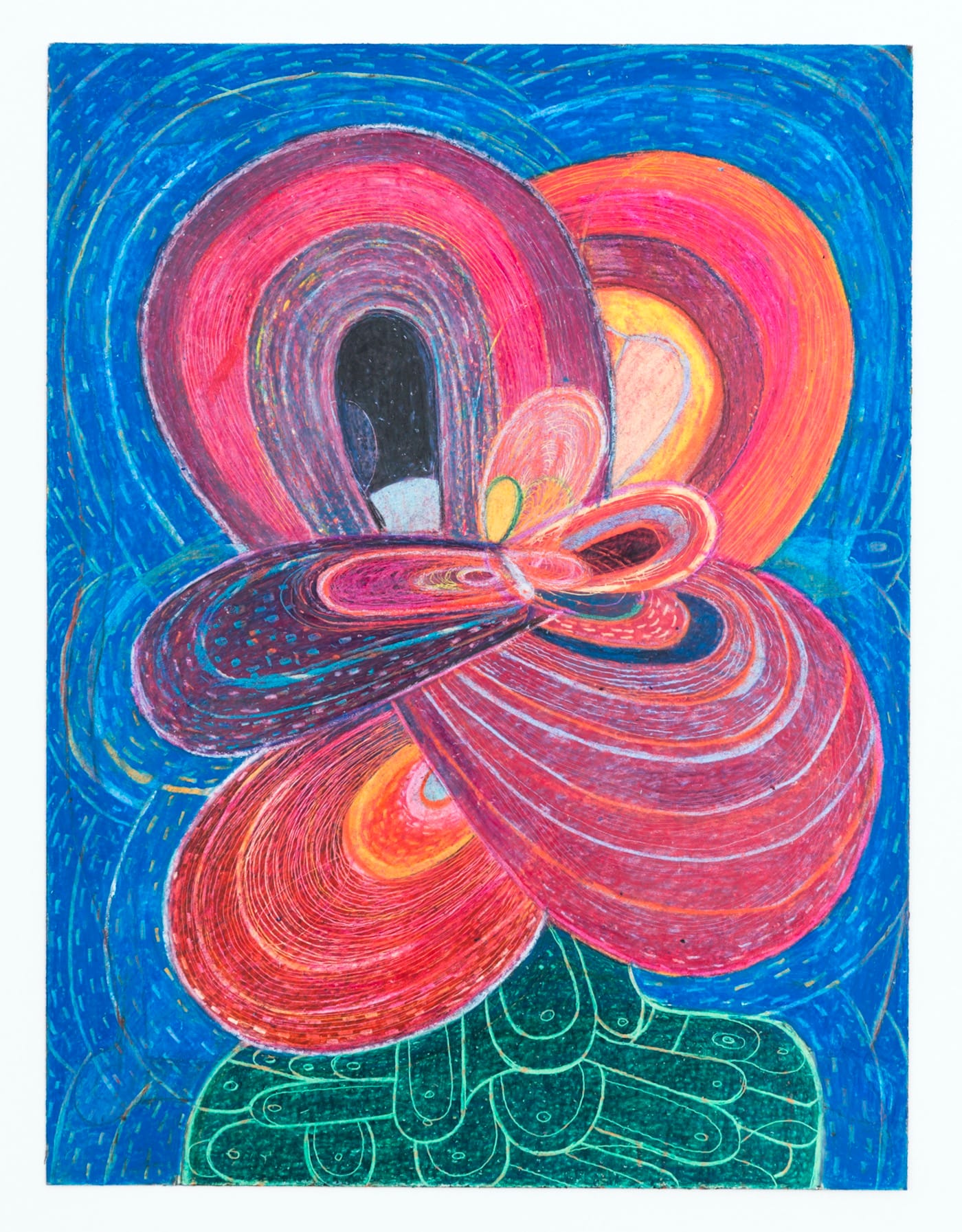 I’ve also been using crayons for forty years. I think that the first art-making technique I was ever taught was layering crayons. When you scratch into them, the color underneath is revealed: bonus color! It is funny to make art using a child’s medium.