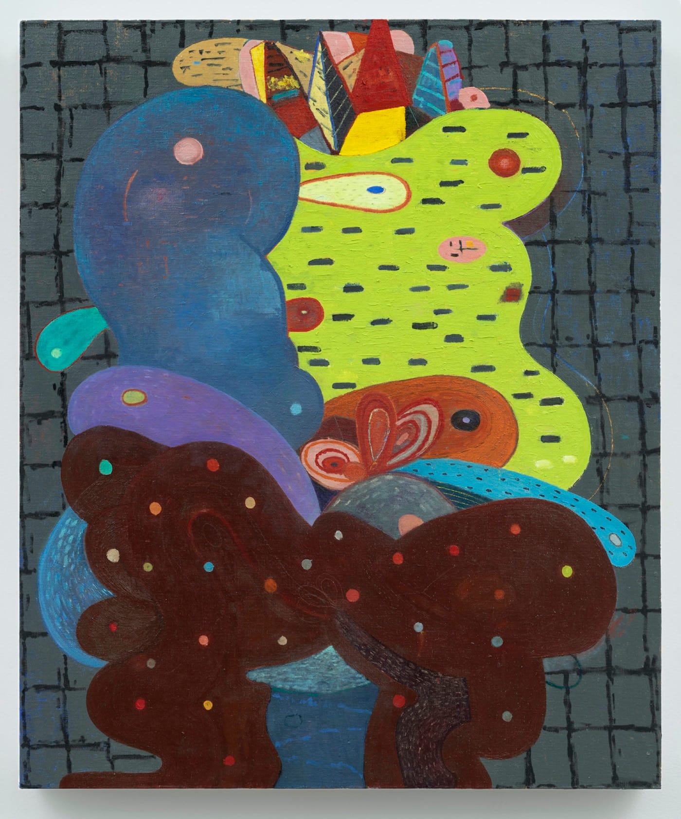 Also, when I make the paintings, I think of all of their components as entities. Each of the entities needs to be treated properly and needs care. I try to be fair to the parts, and not have a hierarchy. Even in the broader color areas, which don’t have a lot of stuff in them, I spend a long time painting. I make sure those parts getting proper attention. They are real to me: I’m watching out for them.