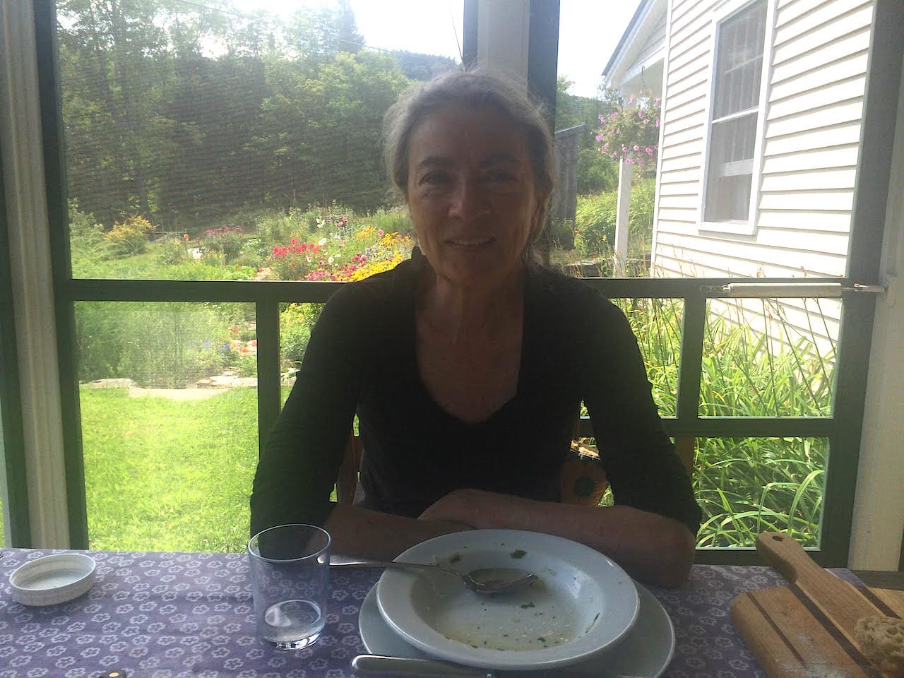 In the middle of our conversation, Susan Walp suddenly paused, gazing down at the table. “Look at that,” she told me, pointing out tiny ellipses, the patterns of the window screen reflected on the surface of a small pewter pepper grinder. We were sitting on the porch of her house in Washington, Vermont, eating a homemade vegetable soup with bread and cheddar cheese. It was telling moment — her enthusiasm about that detail, while my view was focused on the broader landscape, and her garden with streams of orange, red, and purple blooms.