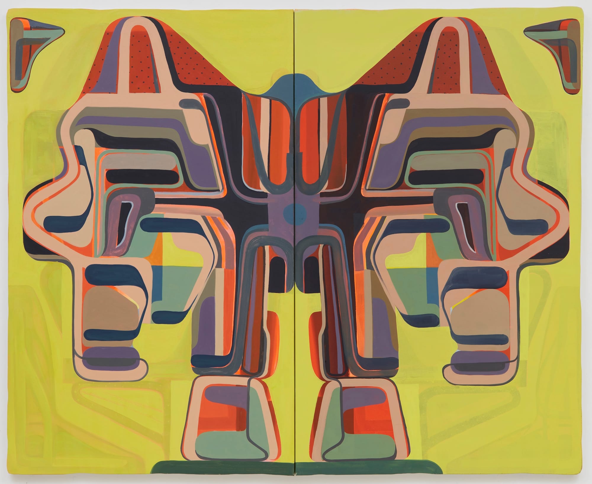 H: More recently, your paintings reference Rorschach inkblot tests and the concept of pareidolia. How do these forms in your work evolve as you construct a painting?
