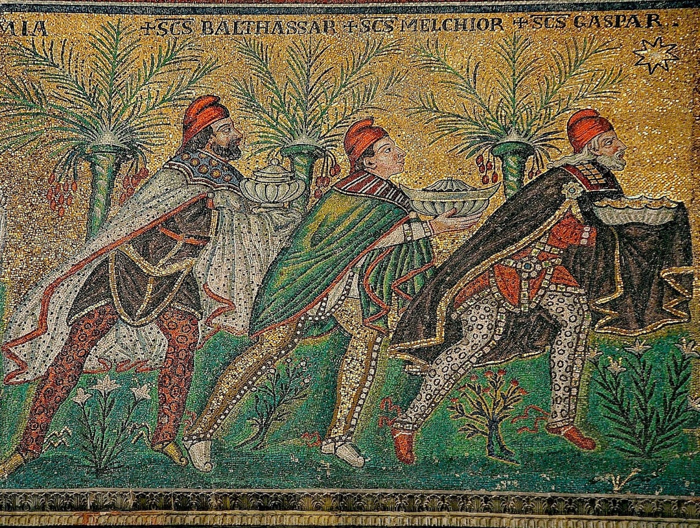 Early Christians don’t appear to have had as much affinity for the Phrygian cap as the followers of Mithras did—at least at first. However, Christian art did continue to use the Phrygian cap as a way of indicating the eastern identity of certain figures. Frescoes of the Magi bringing their gifts to the newly born Christ are often depicted wearing Phrygian caps — as they are in some of the earliest depictions from the catacombs in Rome. The Persian background of these men is further depicted in a sixth century CE mosaic in the Basilica of St. Apollinaris in Ravenna, Italy, which depicts the magi in traditional, patterned tights, tunics, and red Phrygian hats.
