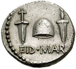 At various times, the hat was used as a collective symbol of freedom beyond just manumission of individuals. Not long after the murder of Julius Caesar on the Ides of March in 44 BCE, one of the assassins, Brutus, minted coins with a freedom cap between two daggers as a sign of freedom from the tyranny of the dictator.