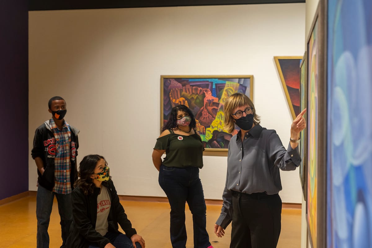 For example, the museum is finalizing Fall 2022 dates for the traveling exhibition Art for the Future: Artists Call and Central American Solidarities, which focuses on the seminal 1980s activist campaign Artists Call Against US Intervention in Central America, featuring work by luminaries such as Lucy Lippard and Daniel Flores y Ascenscio. And the museum’s new virtual project space will allow artists from around the world to engage with the UNM community. Last fall the initiative launched with a six-week program titled Seminar by sculptor and writer Rose B. Simpson of Santa Clara Pueblo. “Rose opened up, and students shared with her in this equally brave, personal way. It blew my mind,” says Statzer. “Afterwards, students said this was something their coursework didn’t cover. It really fulfilled a need.”